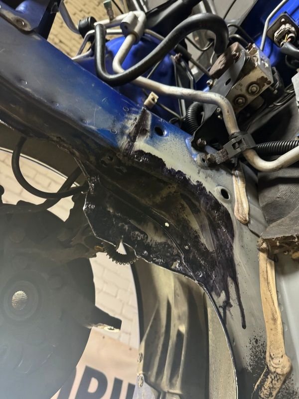 the 4 spot welds i mentioned that need to be drilled from the wheel arch side are for the reason to not separate the thin metal box that the stud sits inside,