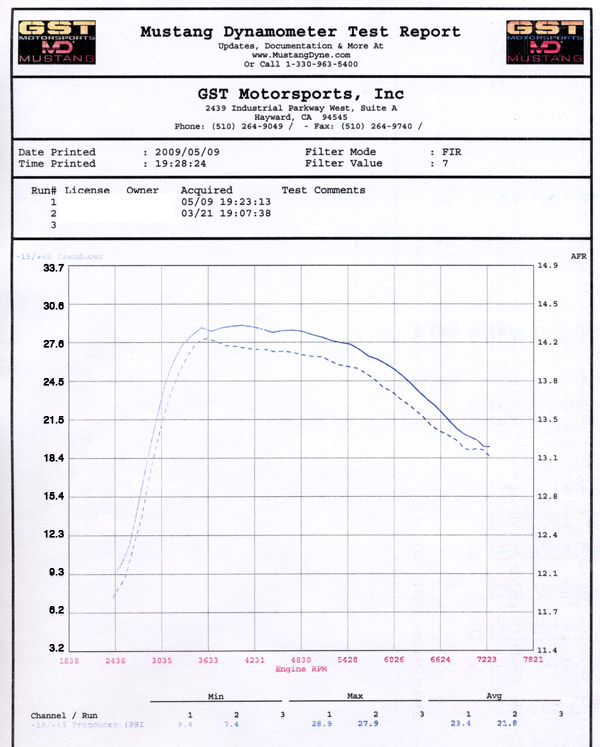 Fuel control came back. Went from shooting up to 13.5 AFR at 6500 last time to 10.1 AFR this time on the base run.
