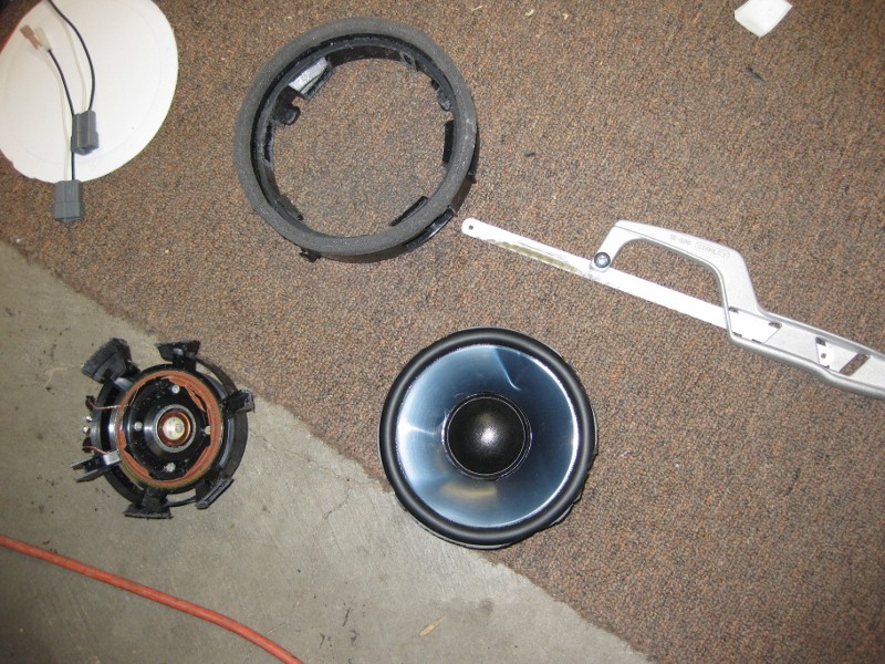 Using the stock speaker, I tore it apart to make a mount for the new speakers