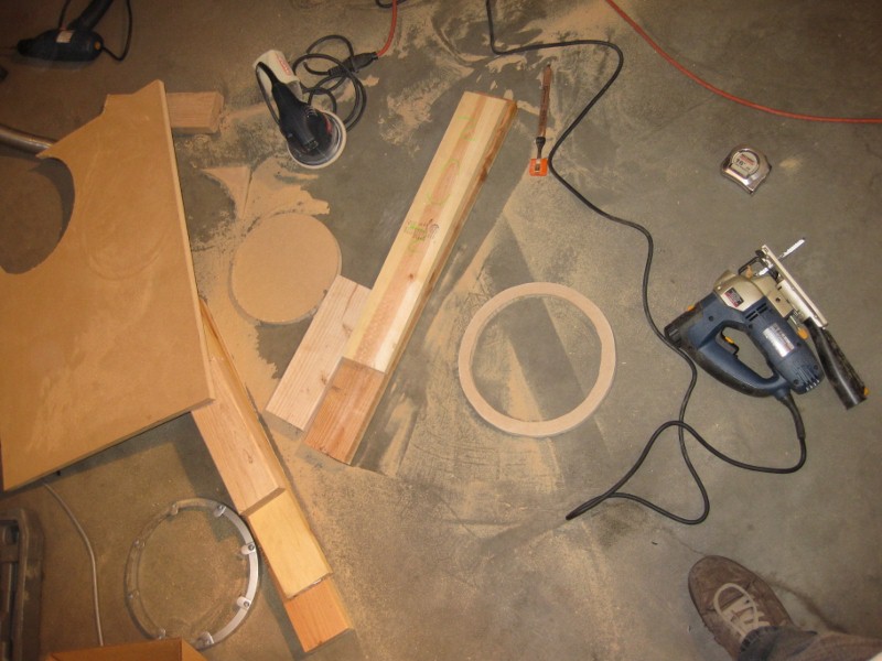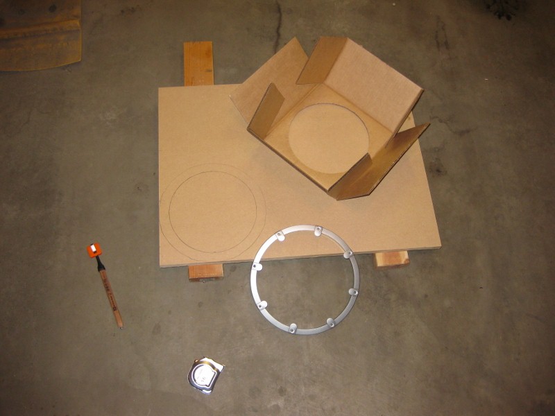 Once I was done with that modification, I discovered that the box was STILL not quite deep enough. Somewhere I read it was 6.5", but in reality it's about 5.7-5.8" the W3 mounting depth is 5.93". So, with no other alternative, I decided to build a spacer ring with 3/4" MDF. Quick like: