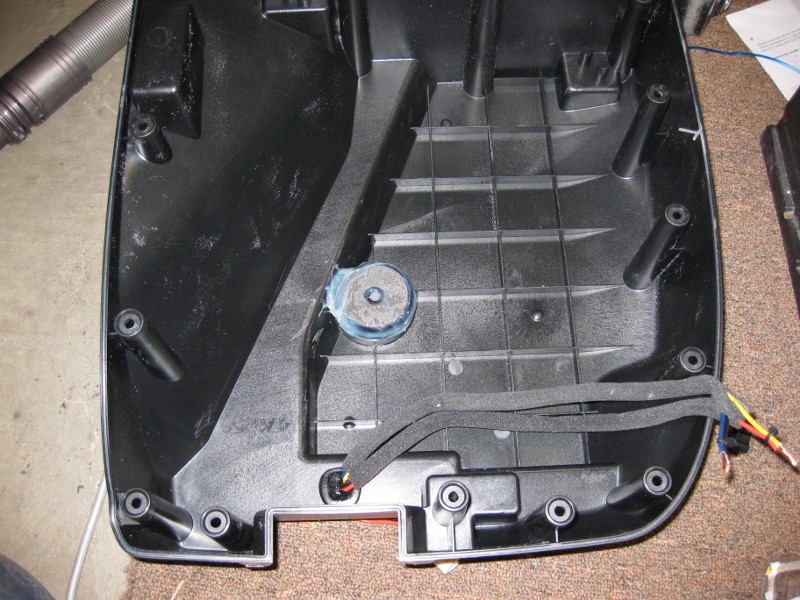 And the amp in place. This pic sucks because it's so dark, and the amp is WHITE (because it's a marine version)