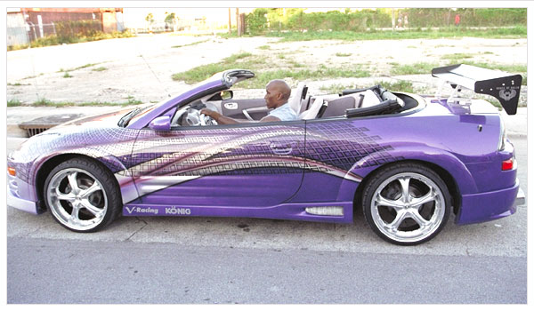 You'd think an Eclipse Spyder, a car that's only purchased by homosexuals and women, would be enough; but no. My friend is really manly, so I had to paint it purple too.