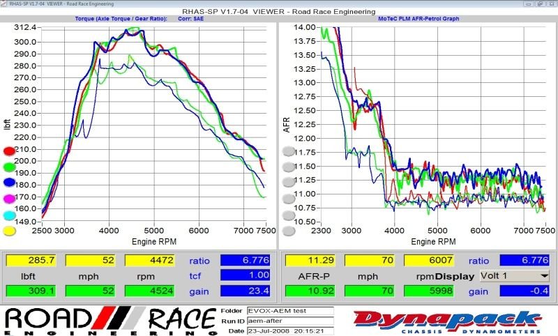 The AEM intake uses a larger MAF tube, thus it sends a LOWER airflow value to the ECU. The ECU sees a lower airflow and dispenses less fuel. The lower fuel level leans out the excessively rich stock tune, for a power gain. AND the lower load levels (calculated from the lower airflow values) advances timing more (due to being in a lower load cell) so there may also be some more power. That's the AEM with a *stock* binary.