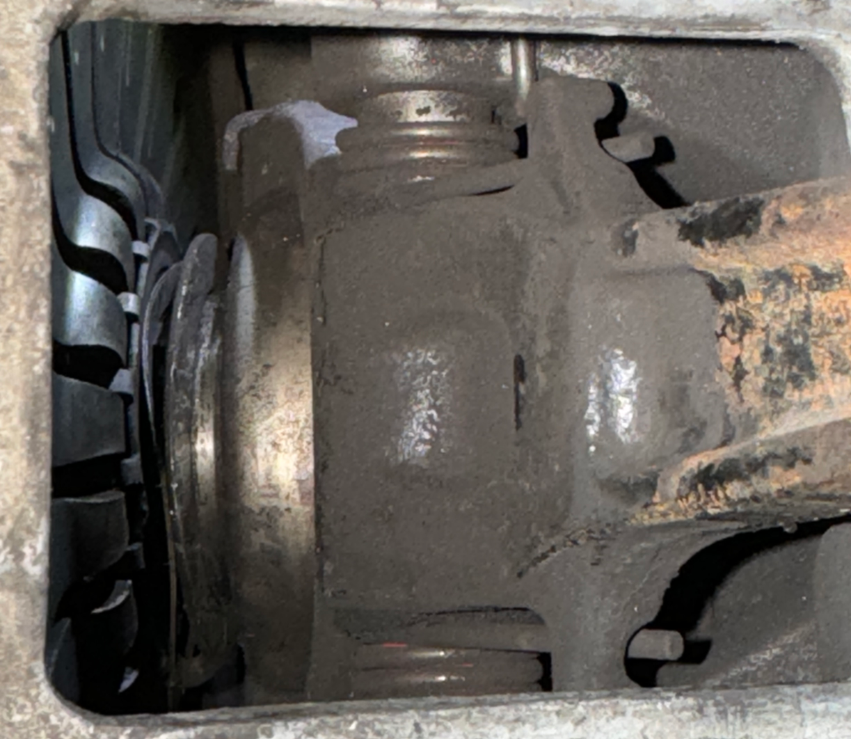2 & 3) View of the TOB; I've tried twisting a screwdriver in between the middle solid ring and the solid transmission piece on right side (photo 2), but it doesn't seem to budge from here