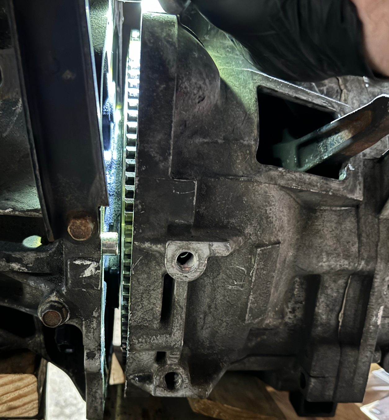 4 & 5) I've opened the transmission ~1 inch all around, but won't go further despite using some large pry bars