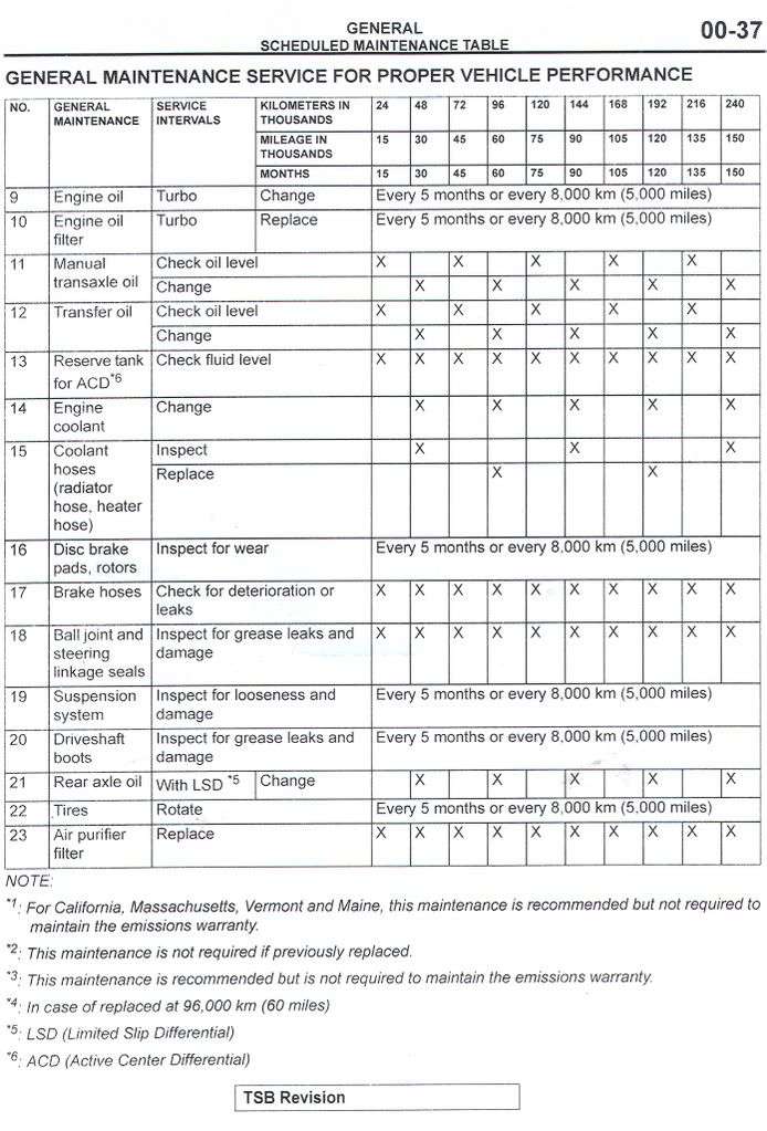 When it comes to maintenance, i highly recommend following the general maintenance schedule. It was design for our cars in mind.