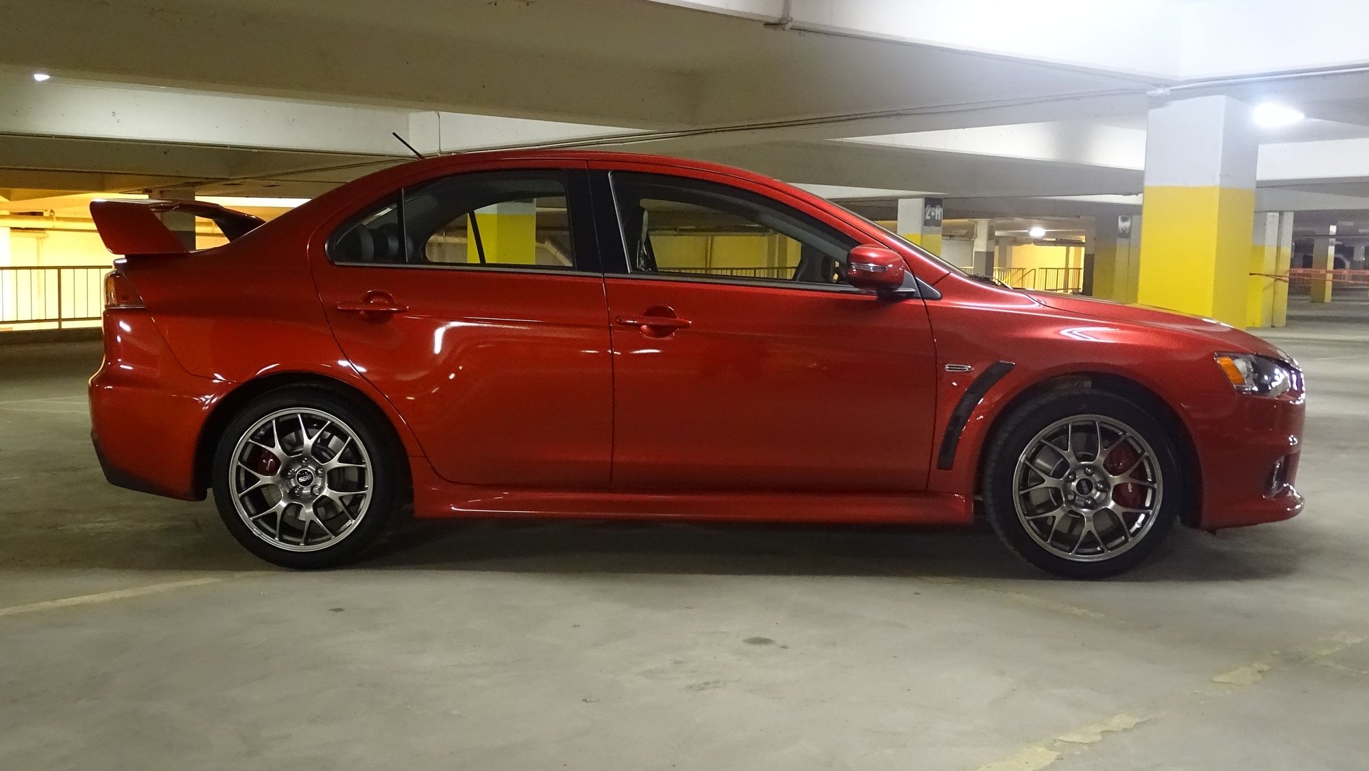 I bought a '14 vanilla Lancer last year. While taking it in for a blown tire, some salesman convinced me to go for the 2015 Evo GSR. After haggling for a week, it's finally made it into my garage.