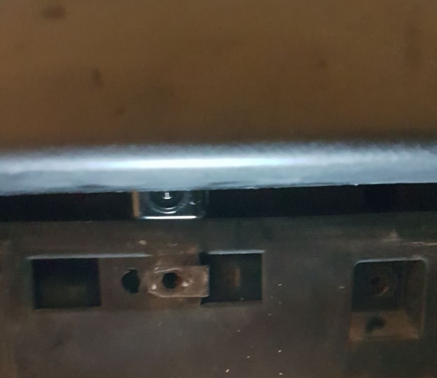 You then have to run the coat hanger from the removed license plate light towards the grommet.