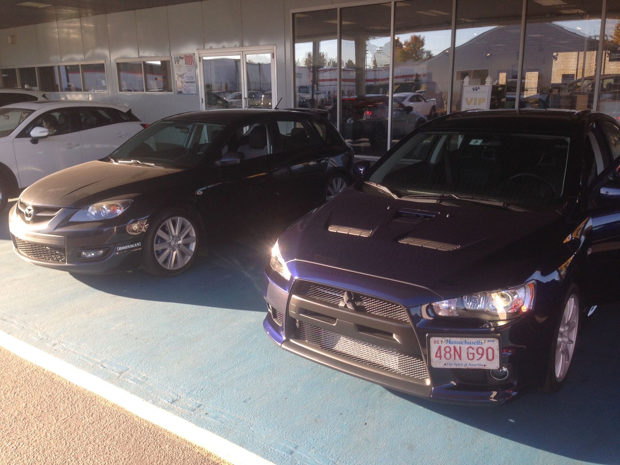 Loved my Mazda and it was fast (definitely would blow the doors offf this evo in a highway pull.) But that is the only time this evo would even be in the same league as my mazda. The Mazda was fully bolted and corn fed and the evo is stock... for now.