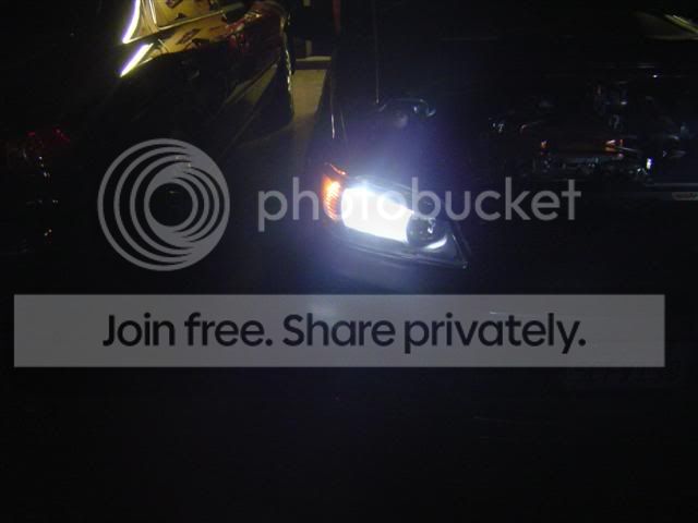 your projectors look pretty good, also saw your update thread and the final product is looking pretty good, just kinda wish the projetors were a bit bigger haha, mine are the size of the turn signal housing haha. I like the idea of using the Cedia housings they are hot. just be sure to keep the hids on even when the hi beams are on, because you will kill them and get major color shift if you don't. in any case, I am going to disect my lights this weekend when I have time. also going to be blowing alot of **** up so yeah, ill update asap.