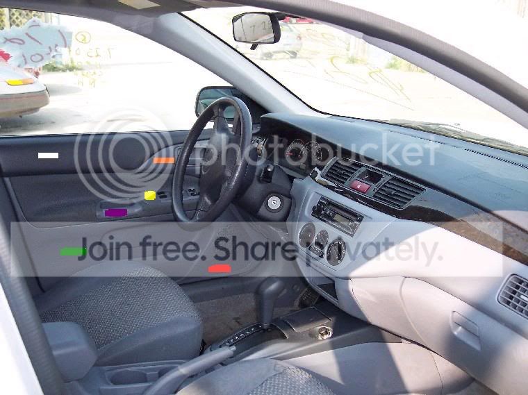 I've decided to do my interior. i want to paint it white this way when i have my streetglow on it'll look tight. but yah i already know what im going to paint as far as the dashboard goes and everything. where im stuck at is which portions should i paint on the door? i made a cheap pic so let me know which colors do you think i should paint white and which ones i shouldnt! thanks!