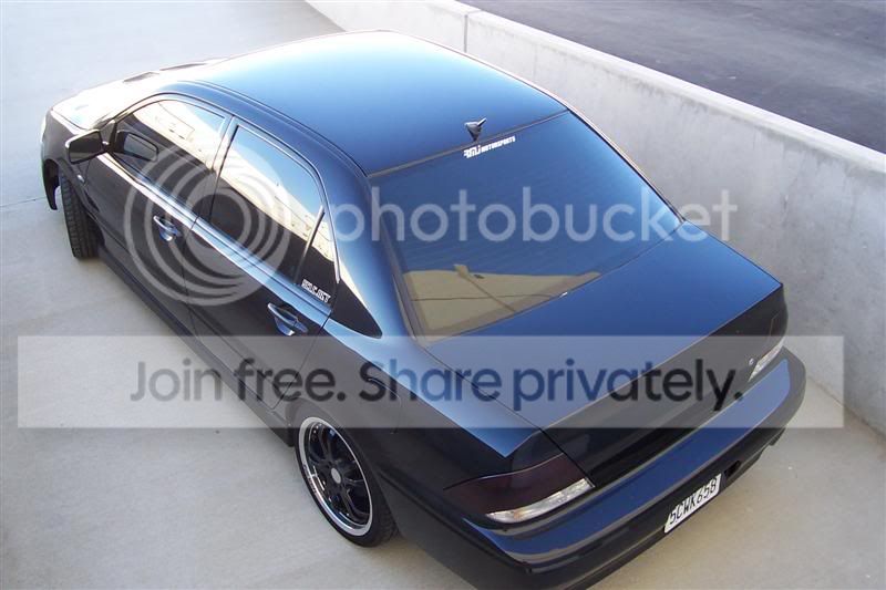 Looks good man. I live in CA, and I beleive the rule is for no tint on the front windows at all, I have had the front done at 32% and the rear at 5%. I have had the tint on since the second week I had the car, and have yet to be pulled over "knock on wood". I love the blacked out lancers like that... here is what mine look like..