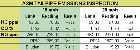 I just failed emissions for Nothern Virginia. Attached is a bmp of the results. Please, any tips or tricks to pass emissions would be very helpful. I have a 2003 Lancer OZ with RRM stage 1 kit. I was having problems with the ECU throwing a "Too Rich Condition" code up in NY, so I also have an O2 simulator. The air filter might also need to be replaced, but I didn't think that would really affect emissions. Thanks.