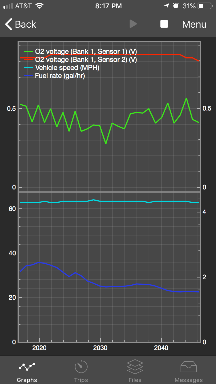 2nd Graph: Good CAT= Bank 1 sensor 2 (O2 sensor under vehicle) is constant as Bank 1 sensor 1 (O2 sensor under hood) fluctuates normally