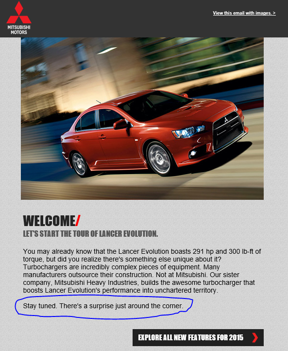 Received an email from Mitsubishi Motor today. It seems to be like just another advertising except the last sentence after an introduction to the EVO. It said