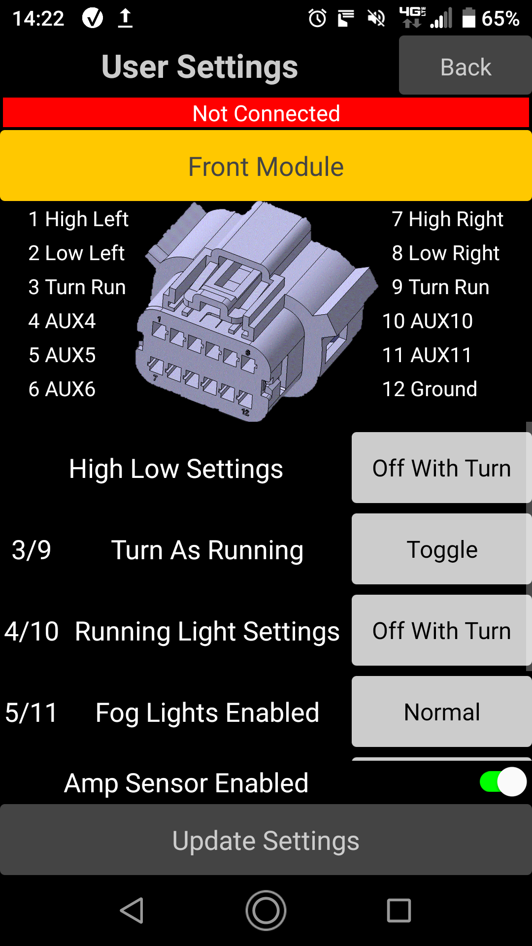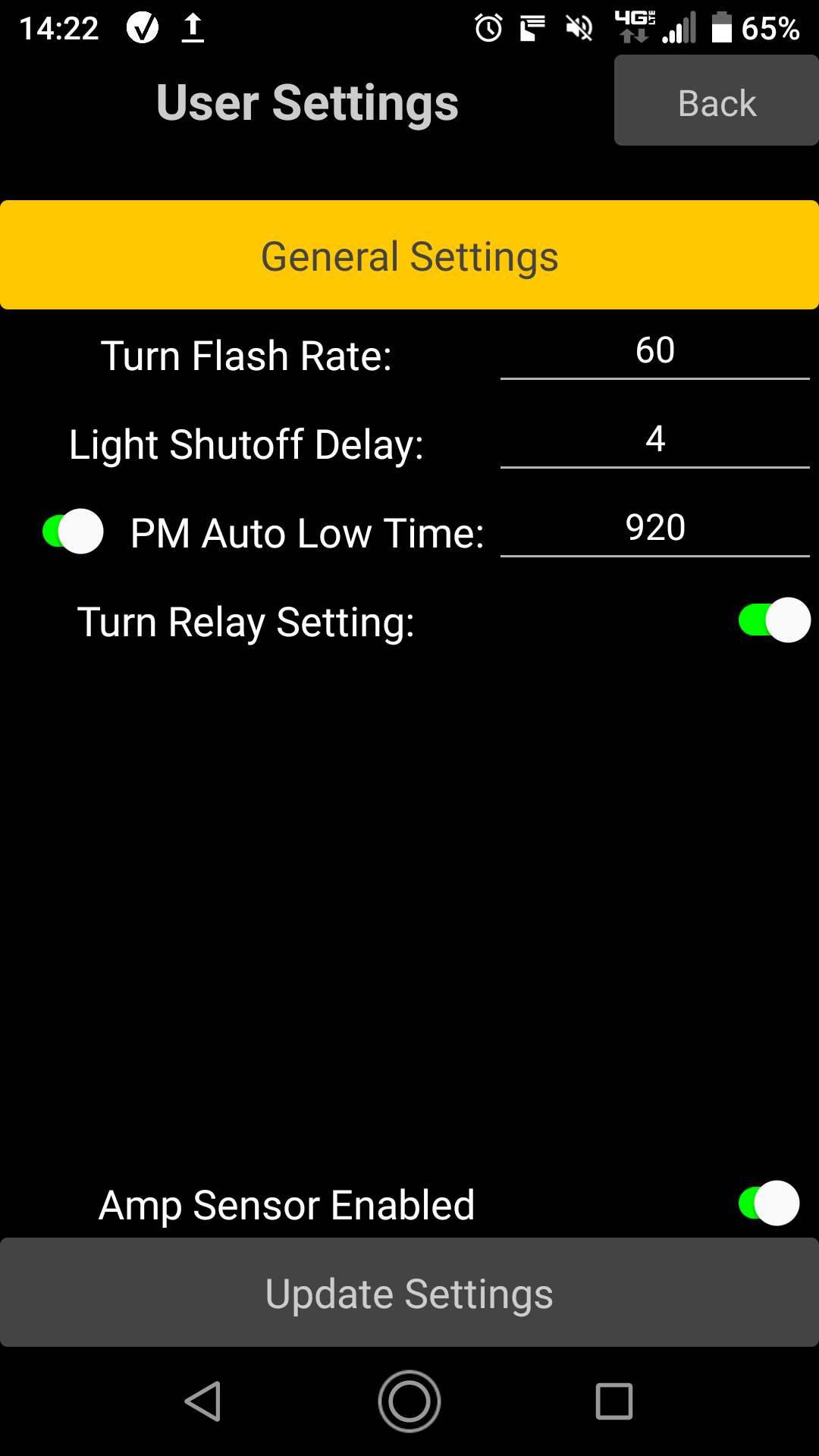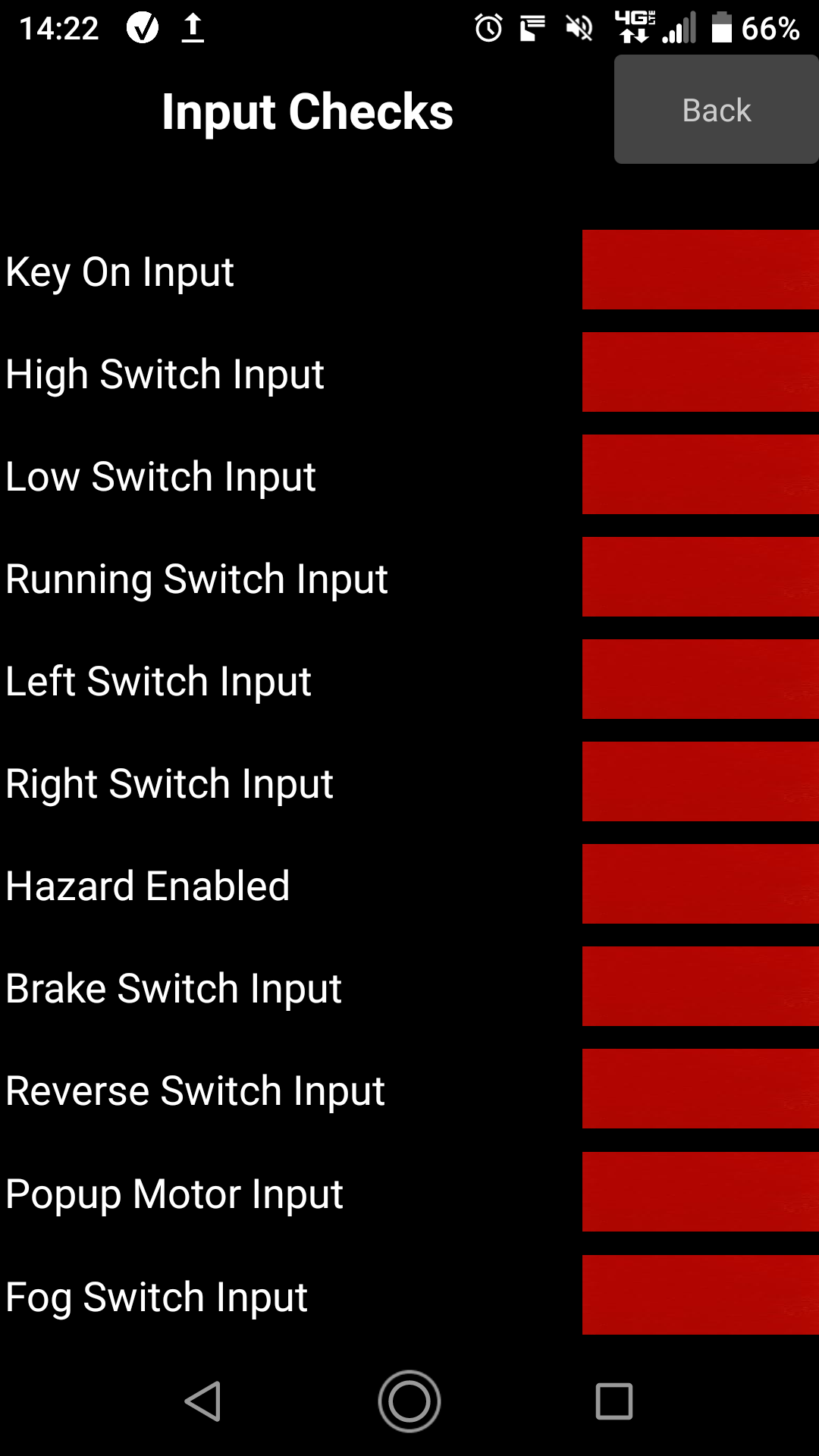 Home Screen Input Checks Output Checks General Settings Front Settings Rear Settings