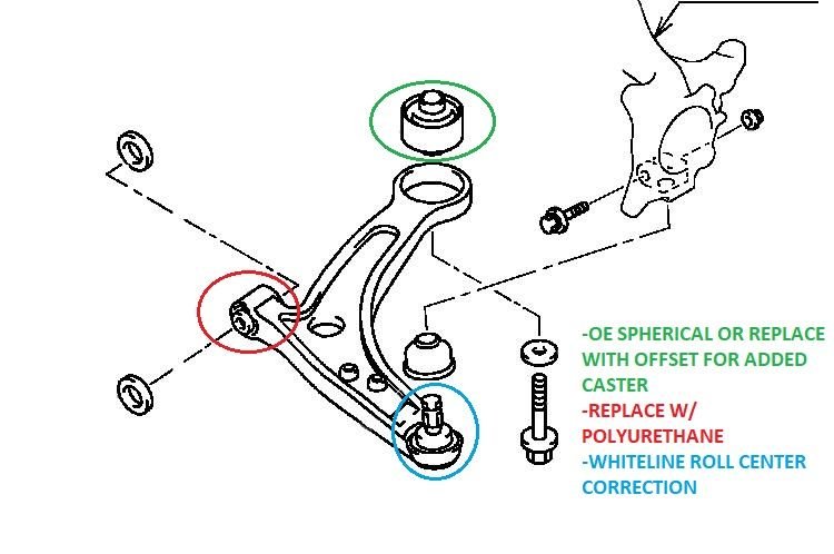I also do not see the anti-lift kit on Whitelines website just these offset front control arm bushings. Are the dive/lift characteristics just altered by changing the location of the washers included? https://whitelineperformance.com/pro...r-rear-bushing