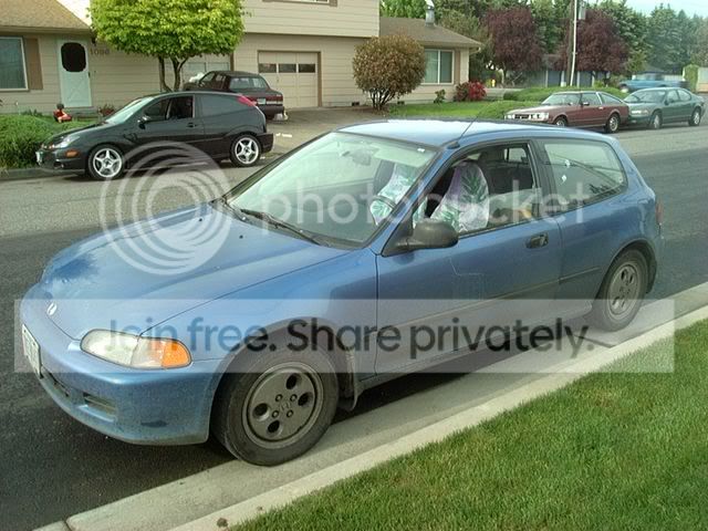 I just ran across this picture of the stock blue Civic I chased the Black Evo in and thought I'd share it with you. On the other side of the street is Bettie, my SVT Focus,.... the car I wished I had been driving that day.