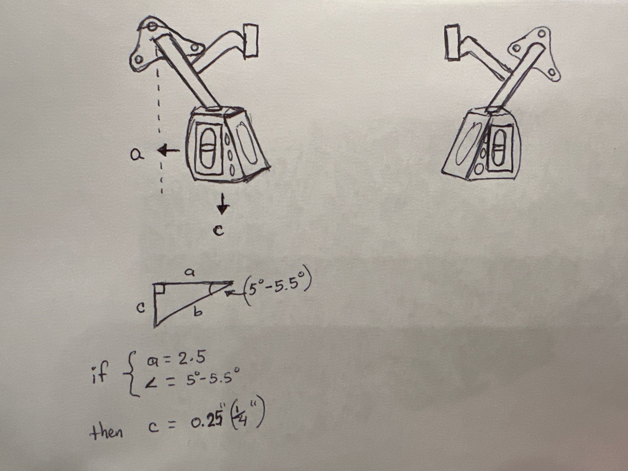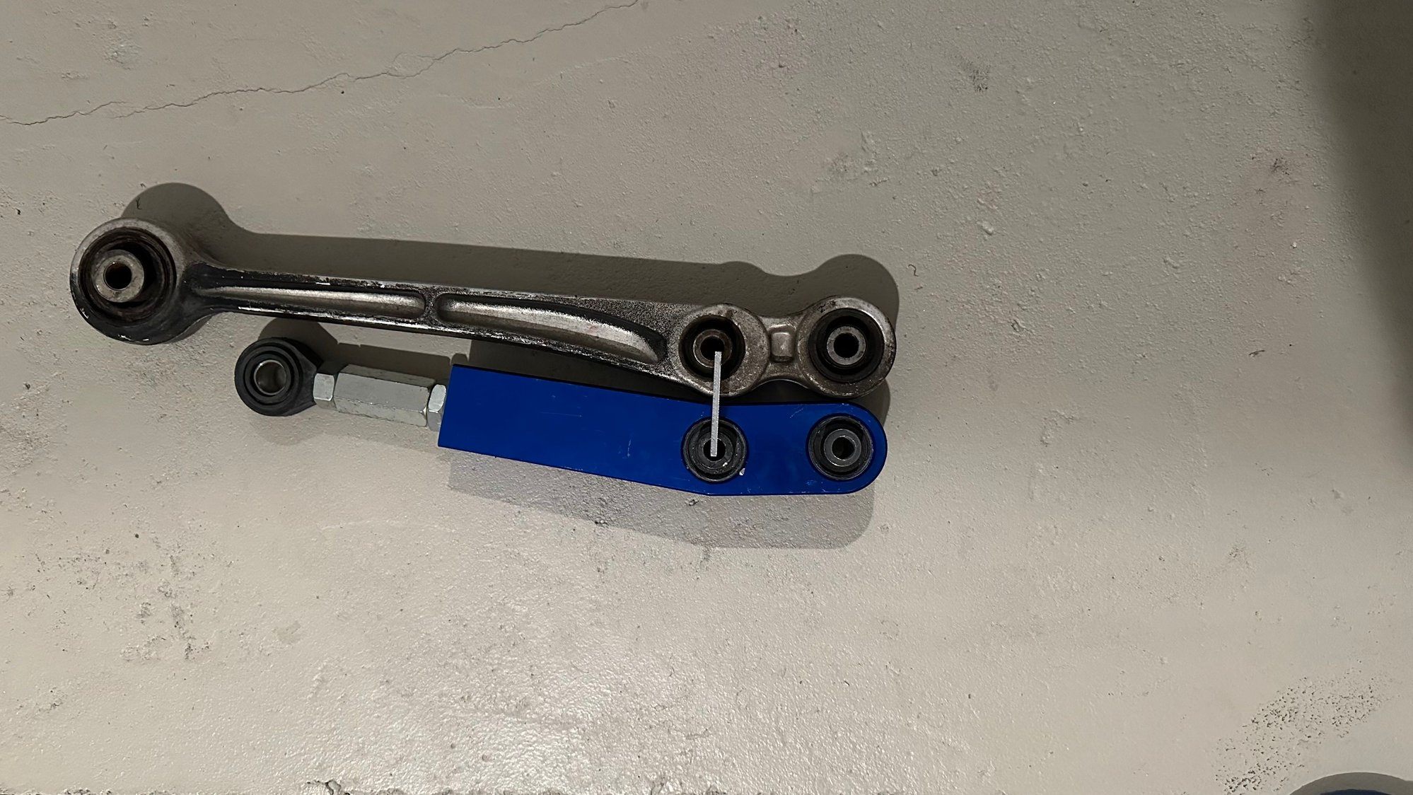 The largest of my worries for the rear setup are the control arms . I’m going to be moving the control arm camber adjustment “box” closer to the wheels . Although it will be about 2.5” on each side , this may be affecting the roll center . So I may need to also drop it down a bit . From my measurement, I think there is about a 5* or 5.5* degree angle . And trying to do some calculations , I believe I will need to lower the camber bolt “box” down about 0.25 inch .
