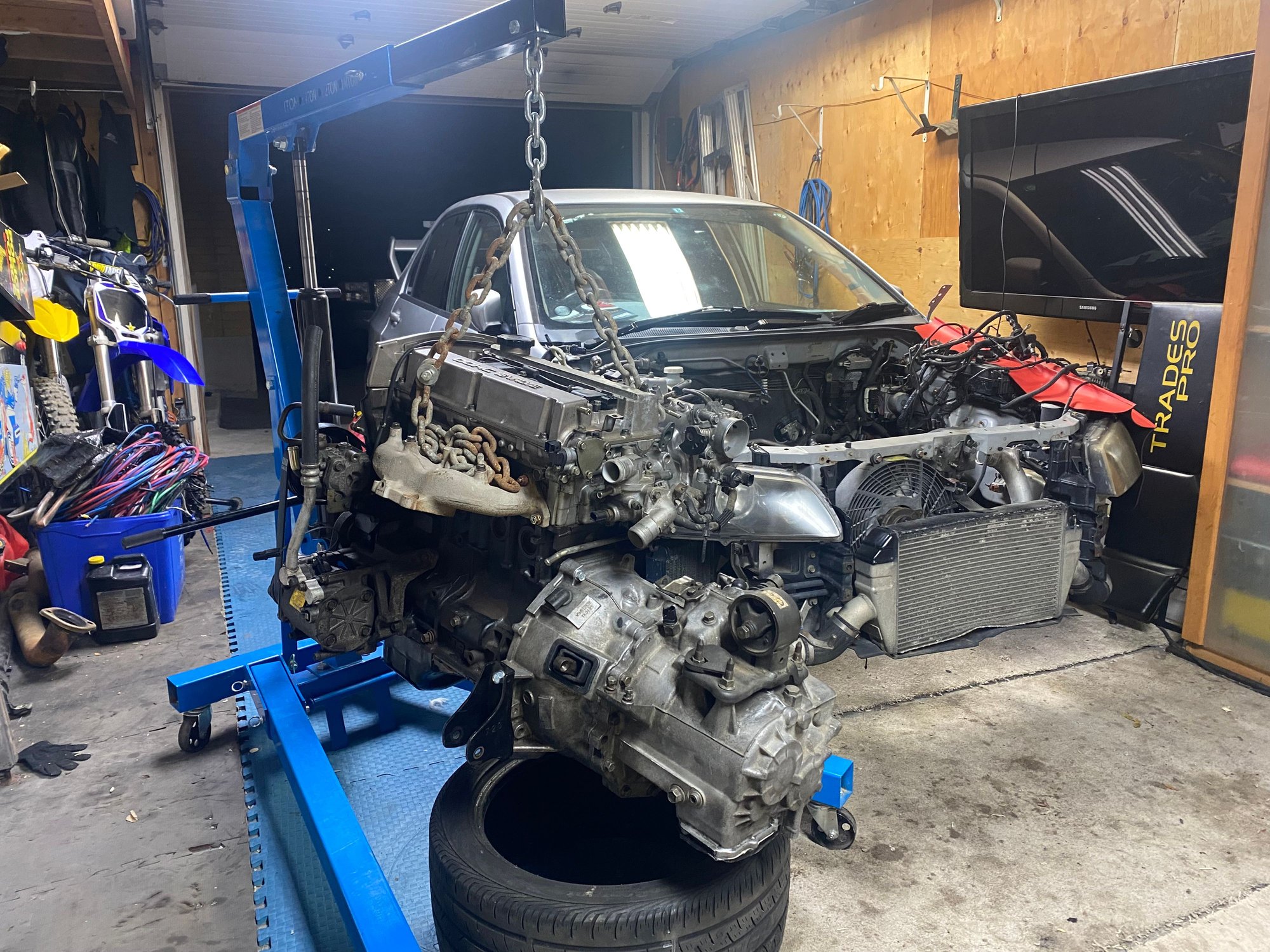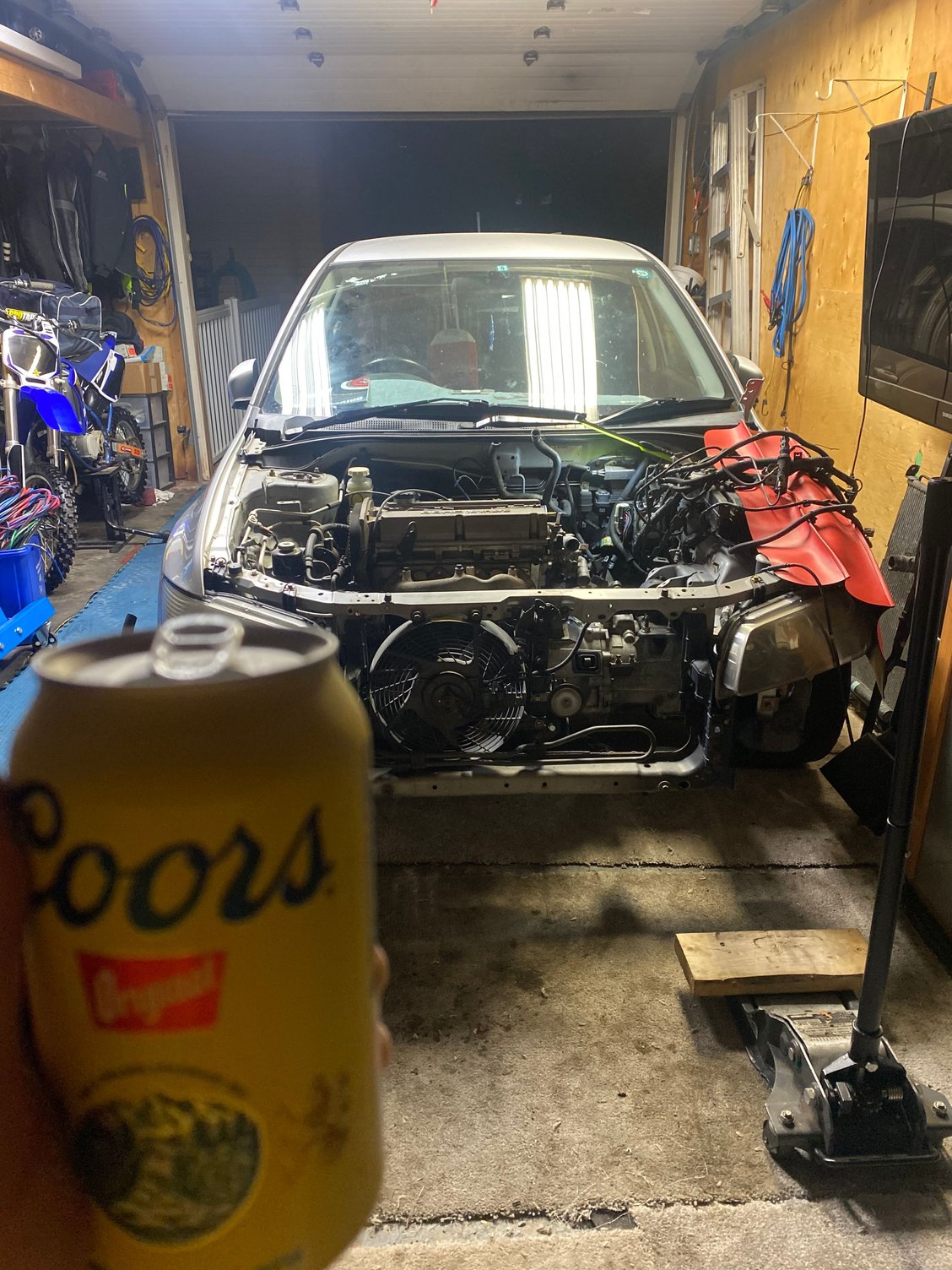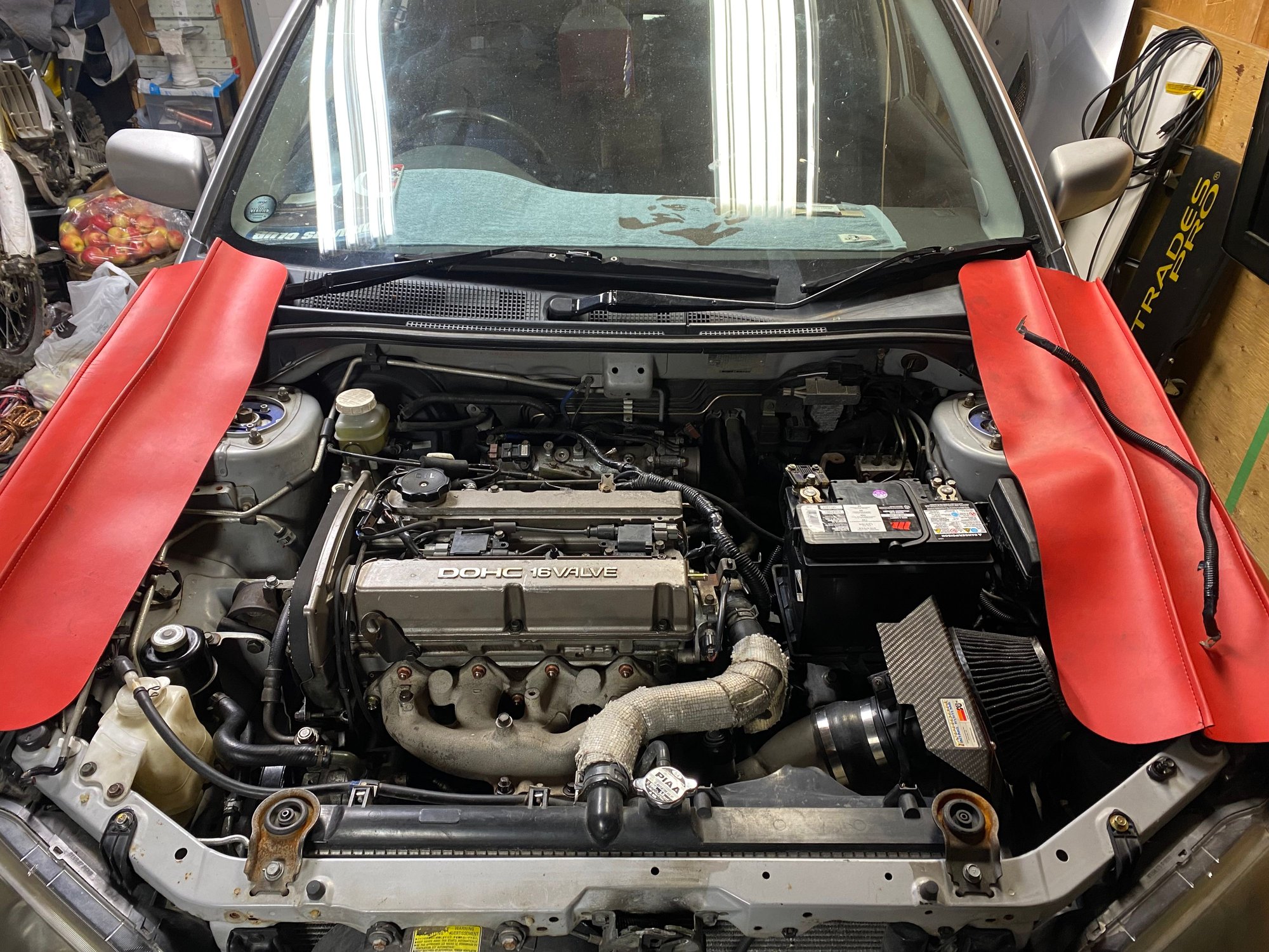 Got the first crank today! Battery hooked up , electrical checks out for now; will make sure when it fires up. The only 2 things holding me back right now are a bent power steering pulley which was so effing bent that it was getting stuck on the mount. Are they pressed on?? I need to swap that asap. Also, I have an evo 8 turbo and an evo 9 oil pan ( found local, you take what you can get !) so my oil return doesn’t match up on the pan leading me to say I need an evo 9 oil return. The pan has the drain oil and bolts clocked and 4 o’clock for one bolt hole and the other one at 10 o’clock, but my evo 8 return is almost straight 9-3