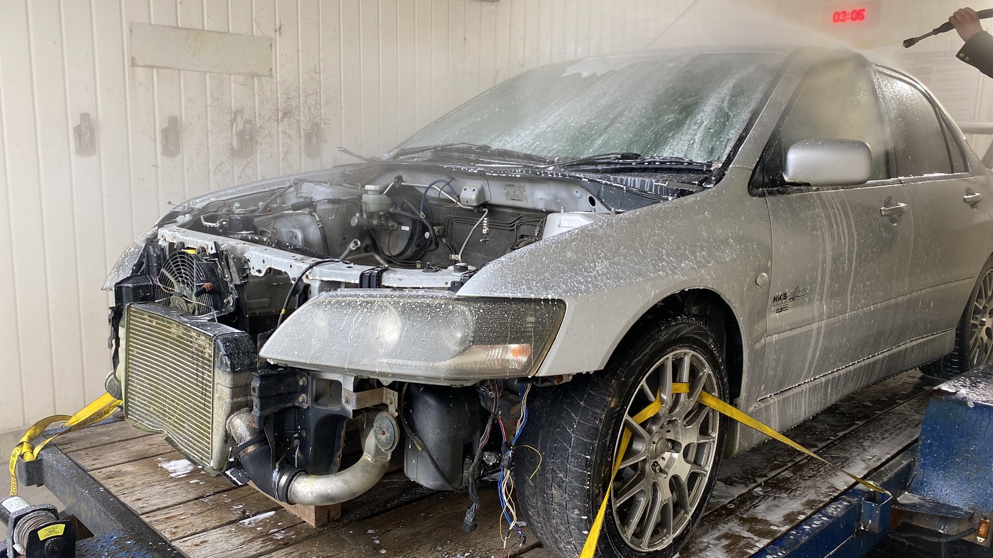As the title states, I was randomly browsing for evo parts and came across an ad for evo parts but it didn’t not say which year. went back and forth and found out he was parting a roller 2 hrs out of the city and I offered on the whole car and got it. Pulled it out of a forest and got it home it was sitting for 4 years! 128xxx verified kms on it