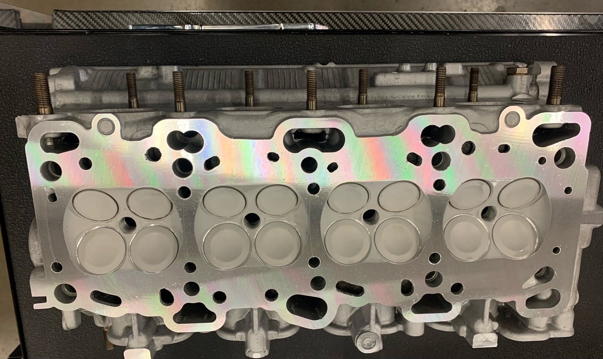Force Engineering Nasty head port and polish 1mm over Ferrea competition intake valves standard size exhaust valves. Valves bottoms and bowls coated with heat barrier from line2line Bronze magnesium valve guides Kelford 288 hl cams Aem true time cam gears Performance Springs 29.01 valve springs with Ferrea retainers GSC Zero tick lifters
