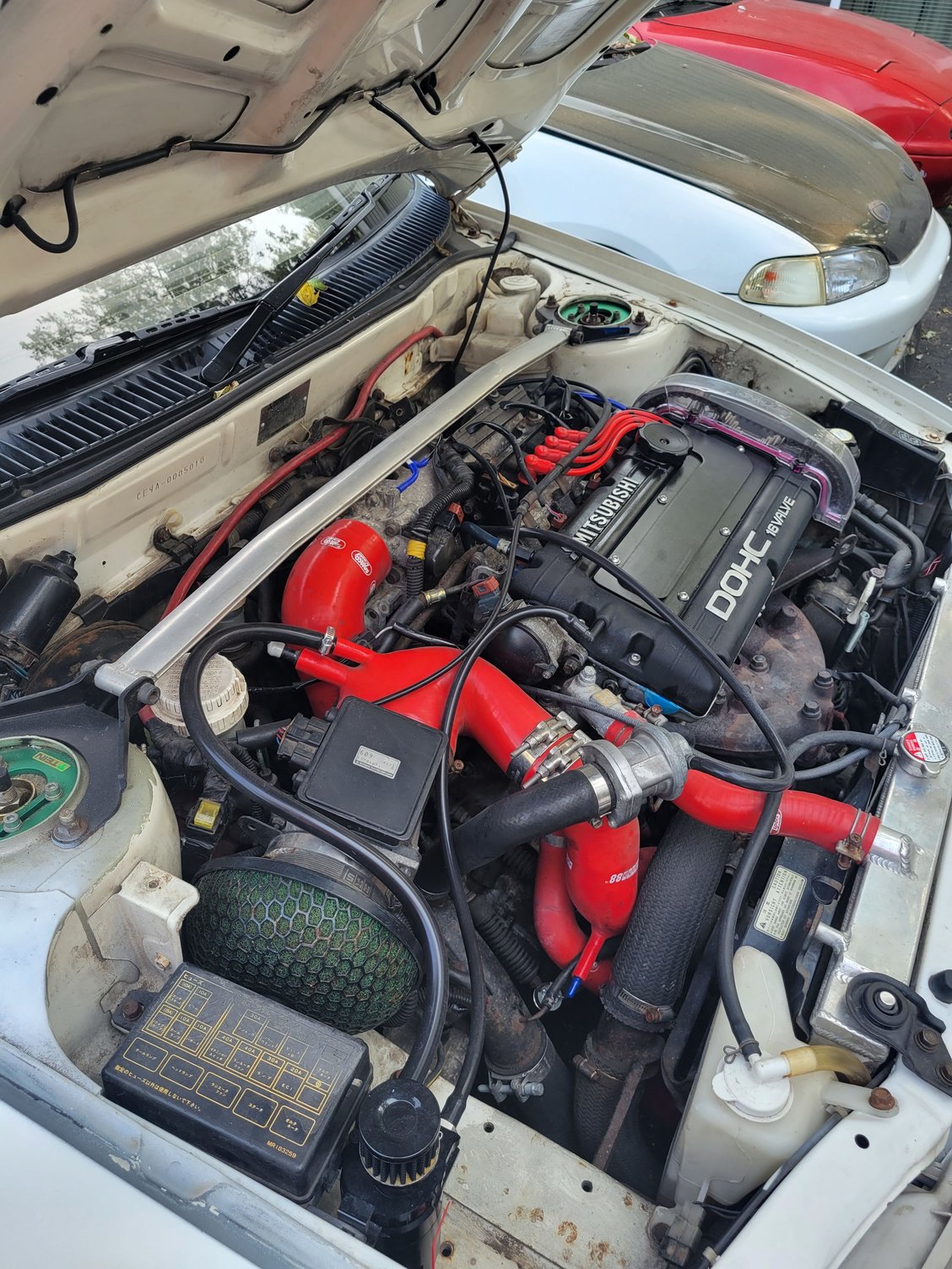 Decided i would go through the front of the engine and do a timing belt and components. Also decided that the roof rust isn't worth the repair so ordered a Carbon Fiber roof from the UK at this time.