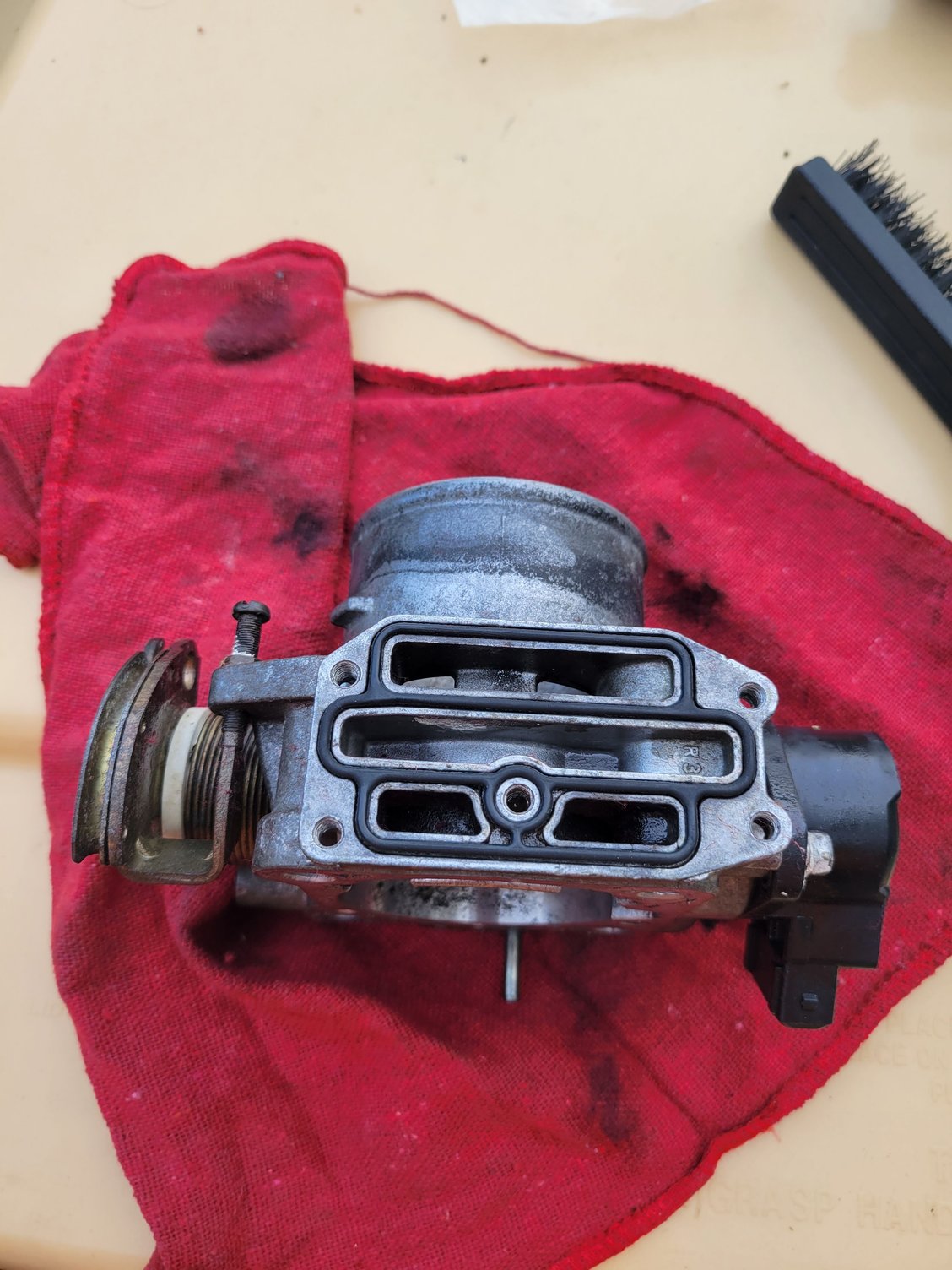 Knowing this, the first things i did was replace the IAC and installed an FIAV bypass plate, which fixed the erratic idle issue. Also cleaned up the throttle body. While the throttle body was off i looked behind the intake manifold and found that the knock sensor was unplugged. Plugged it back in and hope all is good.