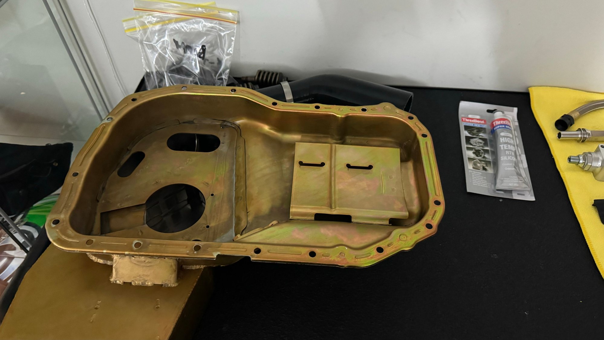 I took the new sump out, it’s recommended to clean it thoroughly as it’s got a lubricant on it for transportation to keep it nice and fresh, I filled it up with water and hosed it out just to make sure if there was any debris in there it came out. Tomorrow I’ll spray it all with brake cleaner and then blow dry it.