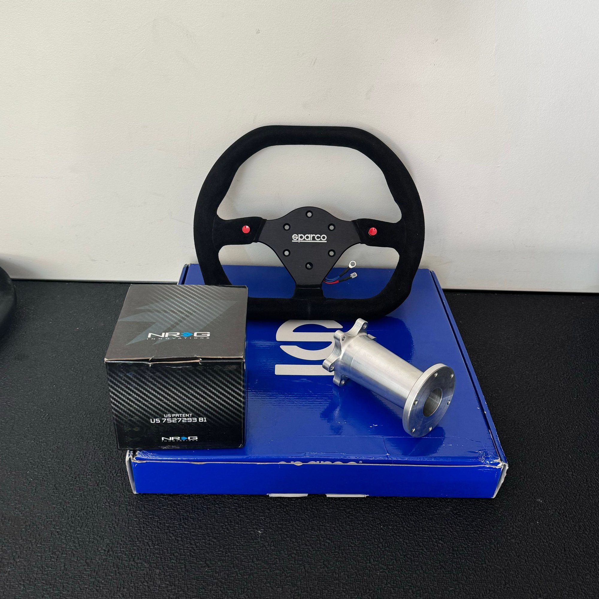 I fitted the wheel, spacer and hub today. Went for the Sparco p310 wheel as I like the small flat design & it comes with 2 buttons. I’ll be using one for my horn as the car is still road legal, and the other will be to change the display page on the motec dash once it arrives and I get it installed. The buttons on the steering wheel are a really neat design as well, the wheel has a a recess milled into the back for the wires to sit in and then go through the middle of the spacer so it’s all kept hidden.