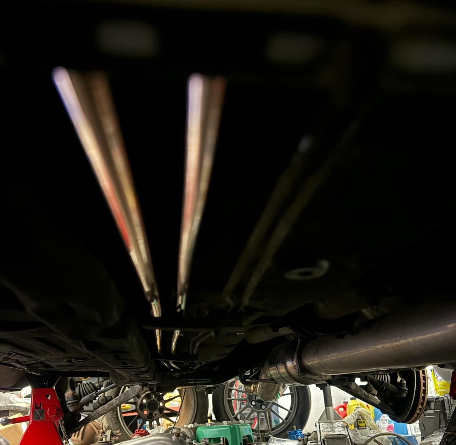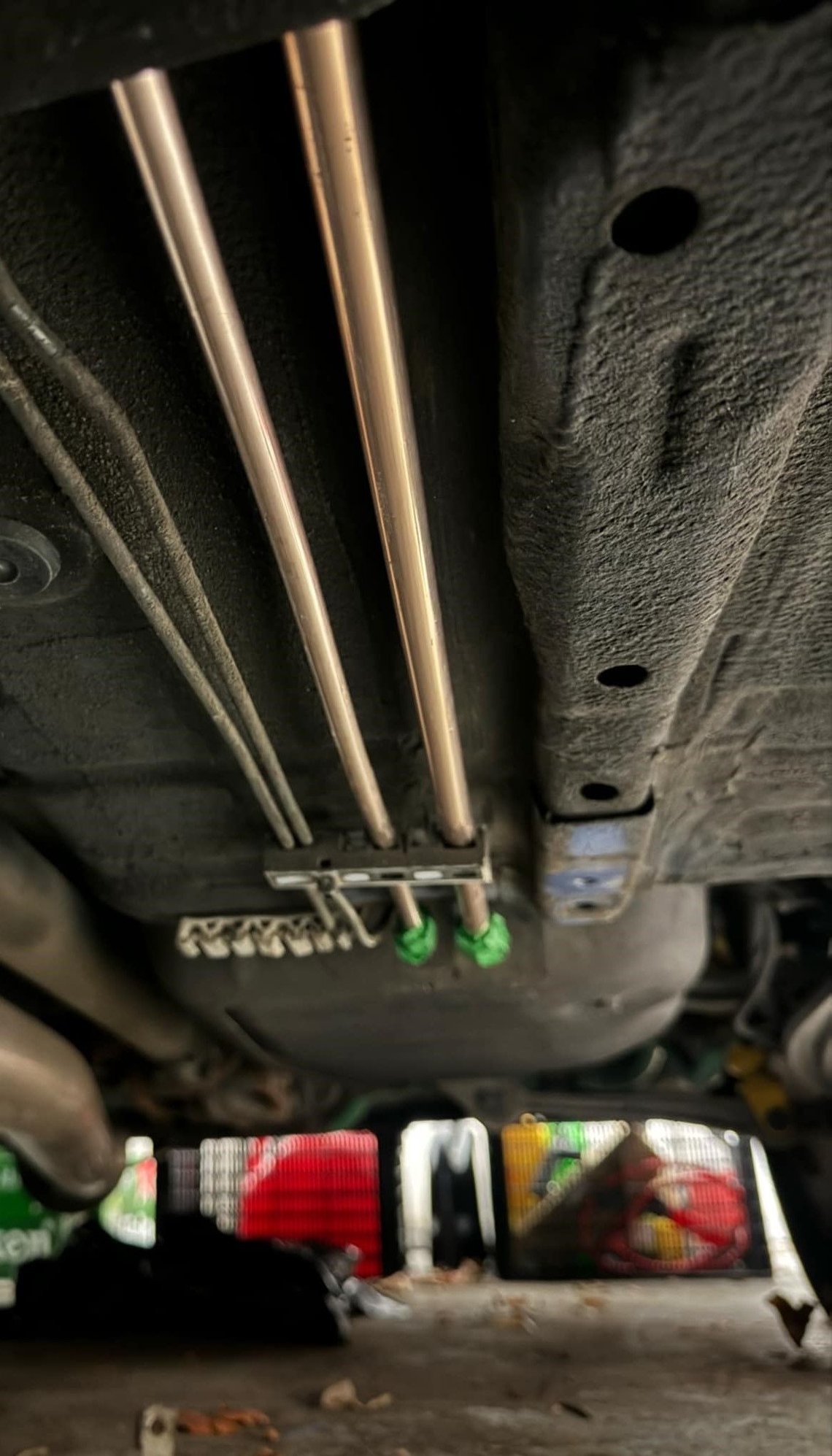 Some pictures of the -8 and -6 lines routed under my car. I removed the OEM fuel lines and the evap line too so I could keep the oem brackets which I had to modify to fit the lines. I know that no one will look under the car at fuel lines but I never really liked how most cars just had braided hose ziptied to the oem hardlines. Next thing i'm going to do is run the PTFE hoses to the fuel rail and hanger.