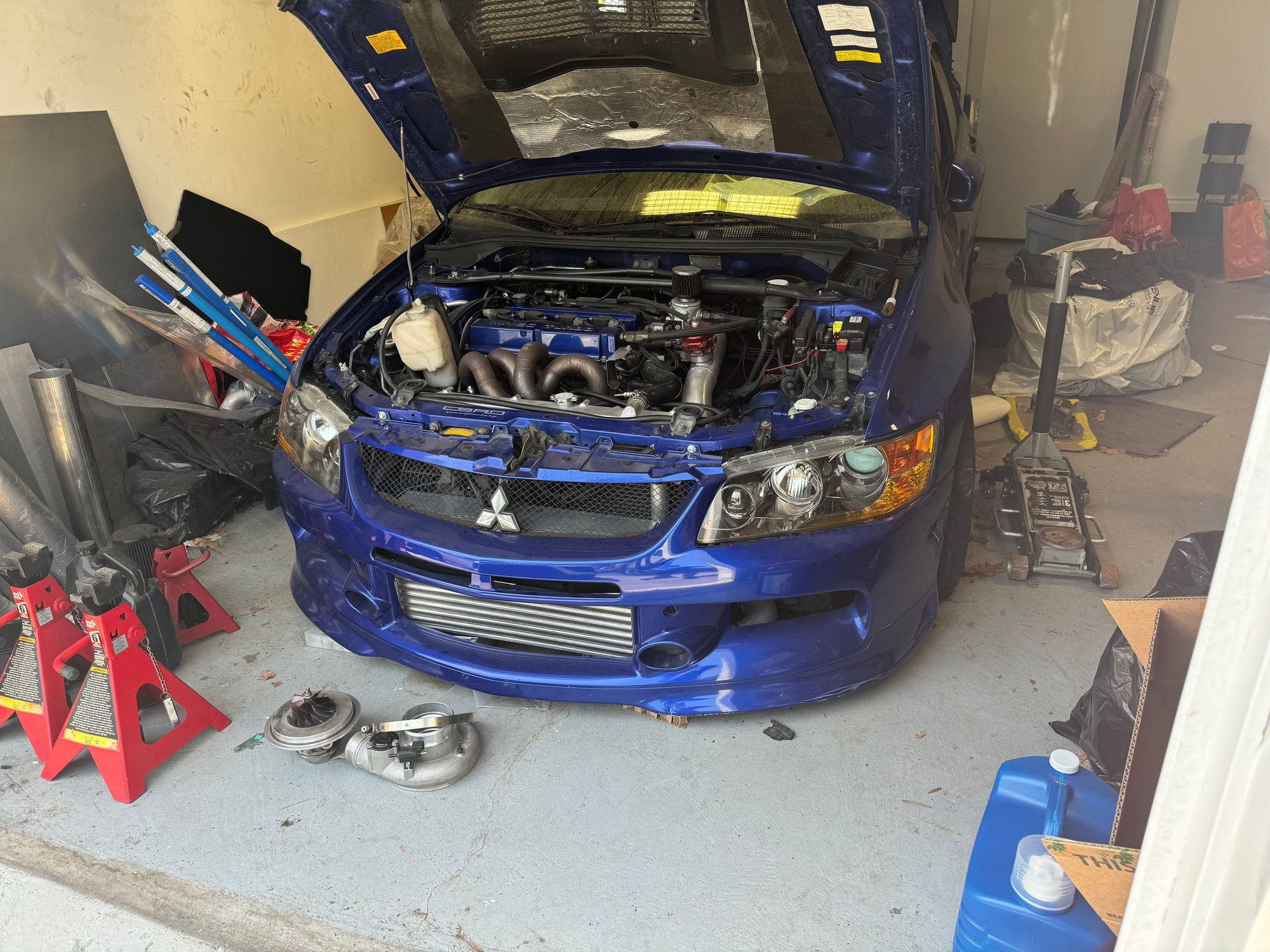 As I was removing the oem wiring harness I noticed that the current GT35 turbo was shot. Tons of in /out shaft play. with a leaking compressor seal. I had an EFR 9280 lying around in my house so I decided the evo would be the perfect candidate for this turbo.