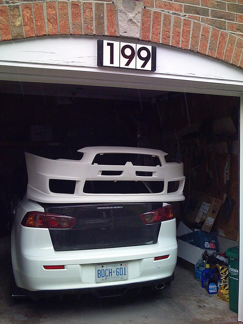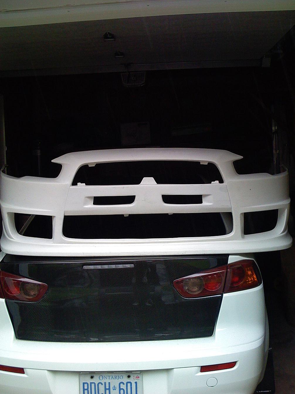 here's a pic of the evo x style front bumper. sorry for the quality of the pic but it's raining so i had to snap photos with my phone.