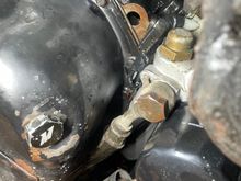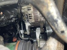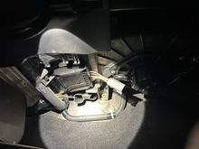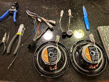 New tweeter in plastic housing and homemade mounting bracket. I had to cut the long black screw protruding beneath