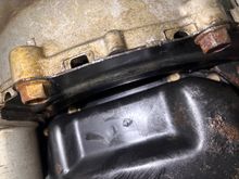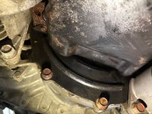 Mitsubishi Evo X transmission, clutch, and flywheel removed.