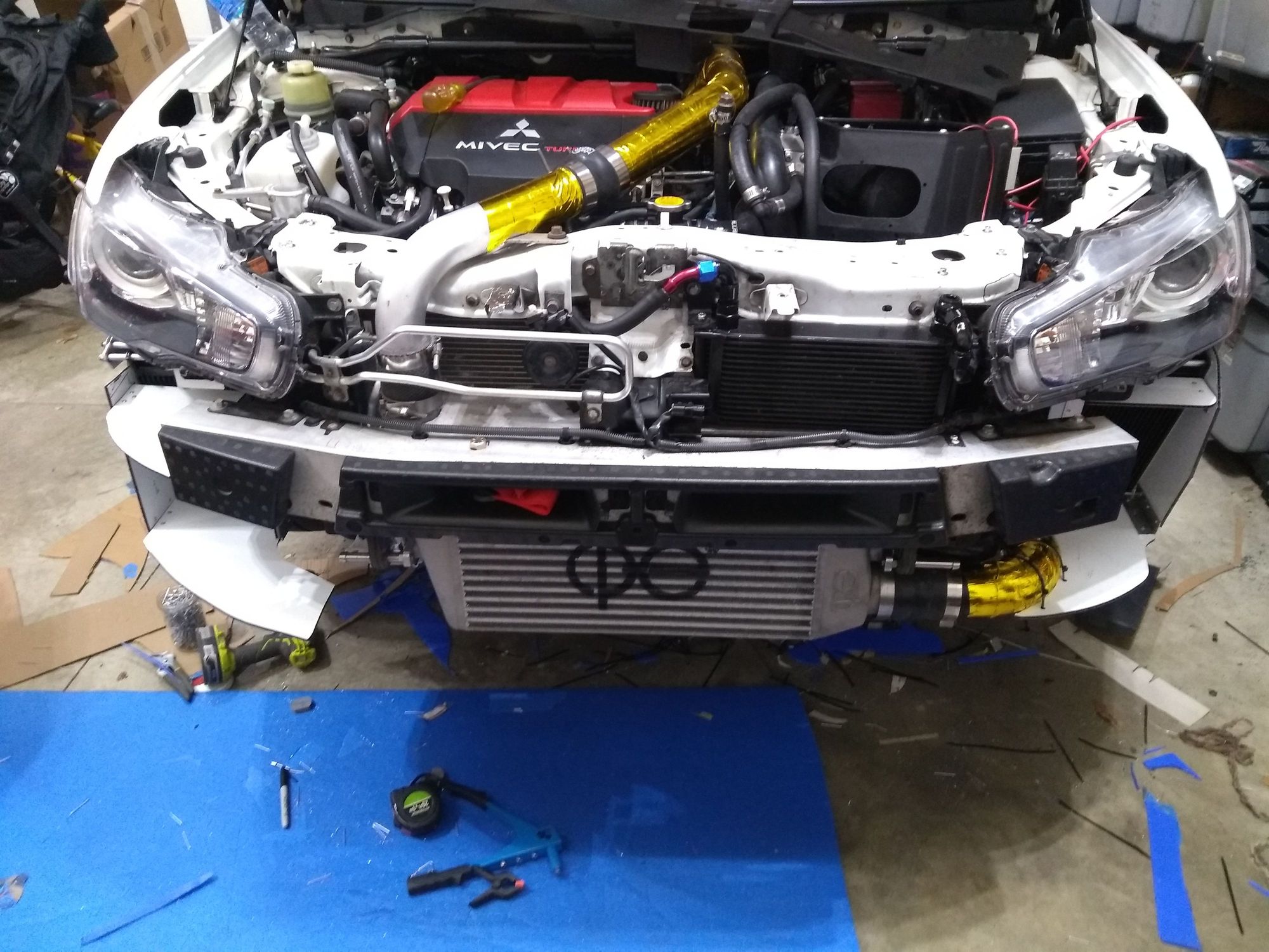 Alumalite construction for ducts on both side mounted derale 25 row heat exchangers. Aluminum construction for brackets to hold coolers. Three SST coolers total.