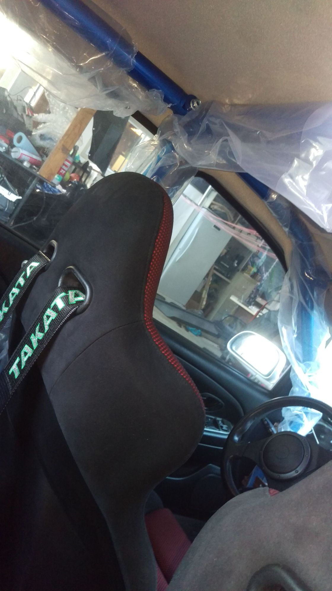 Front and rear cage pieces bolted up to the main hoop of the B pillar. I decided to keep the shipping plastic on to help prevent scratches of the cage
