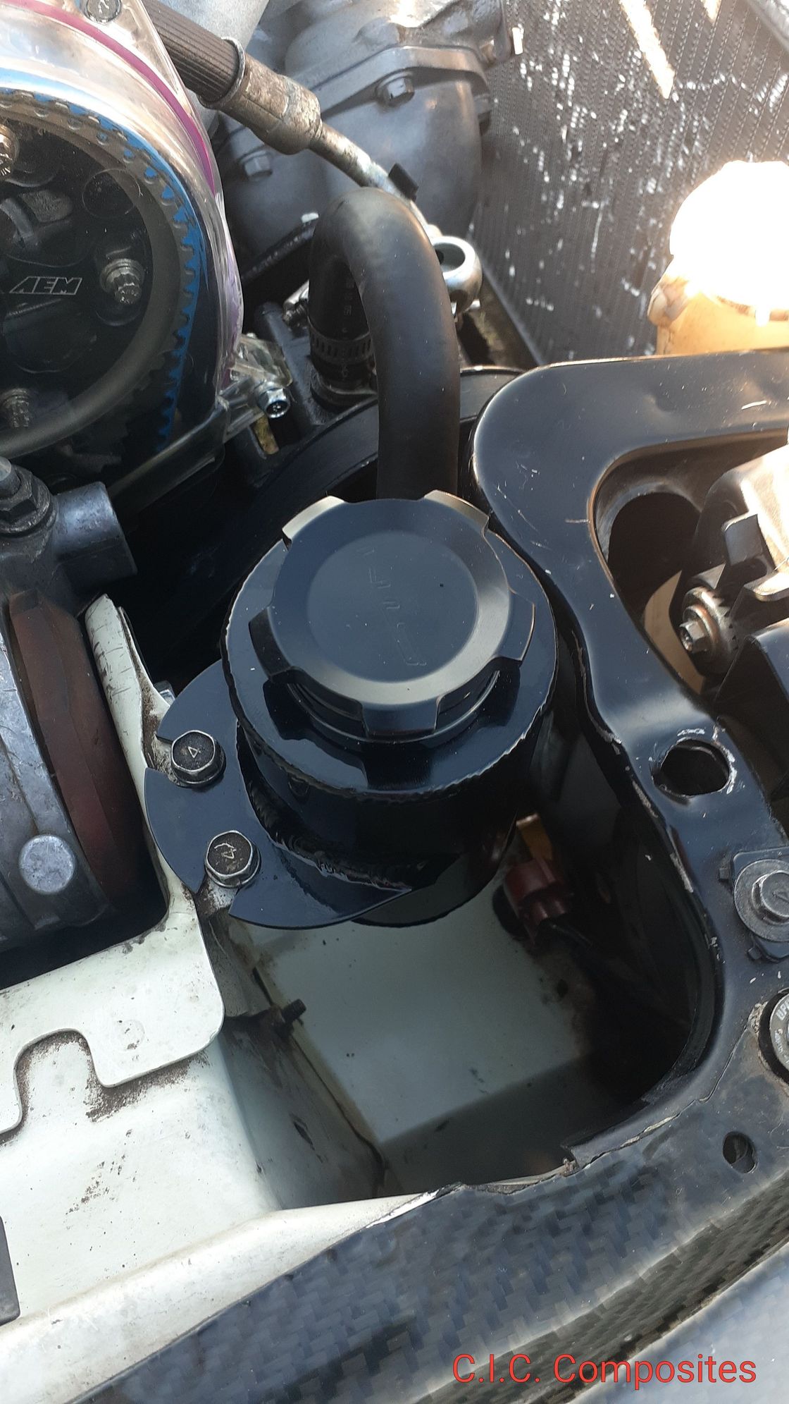 Installthe stm evo 8 power steering reservoir.