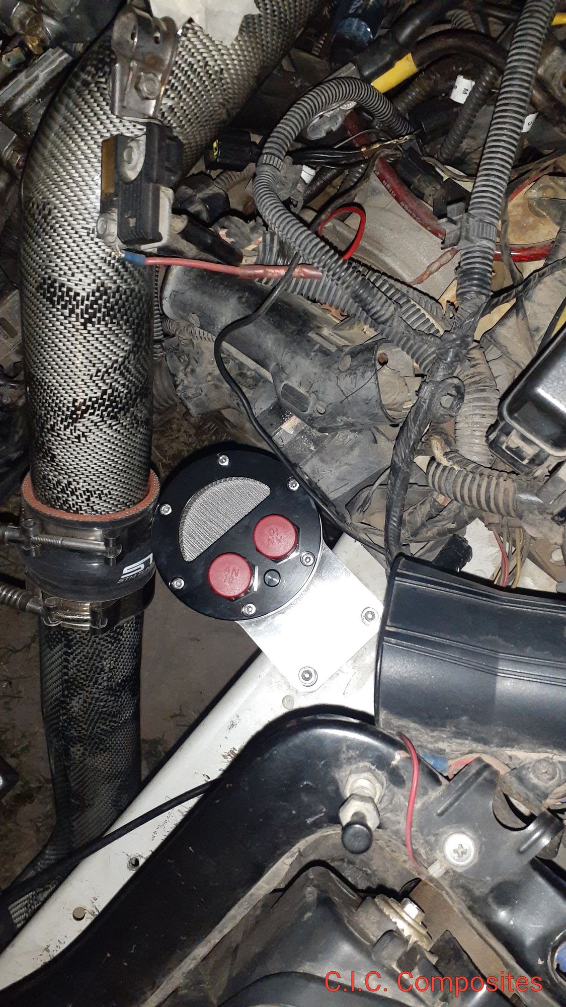 My vibrant recessedcatch can installed its waiting for me to get back to the car to reinstall the valve cover and vibrant lines. Also my white camo carbon fiber pipes. For the cold side intercooler.