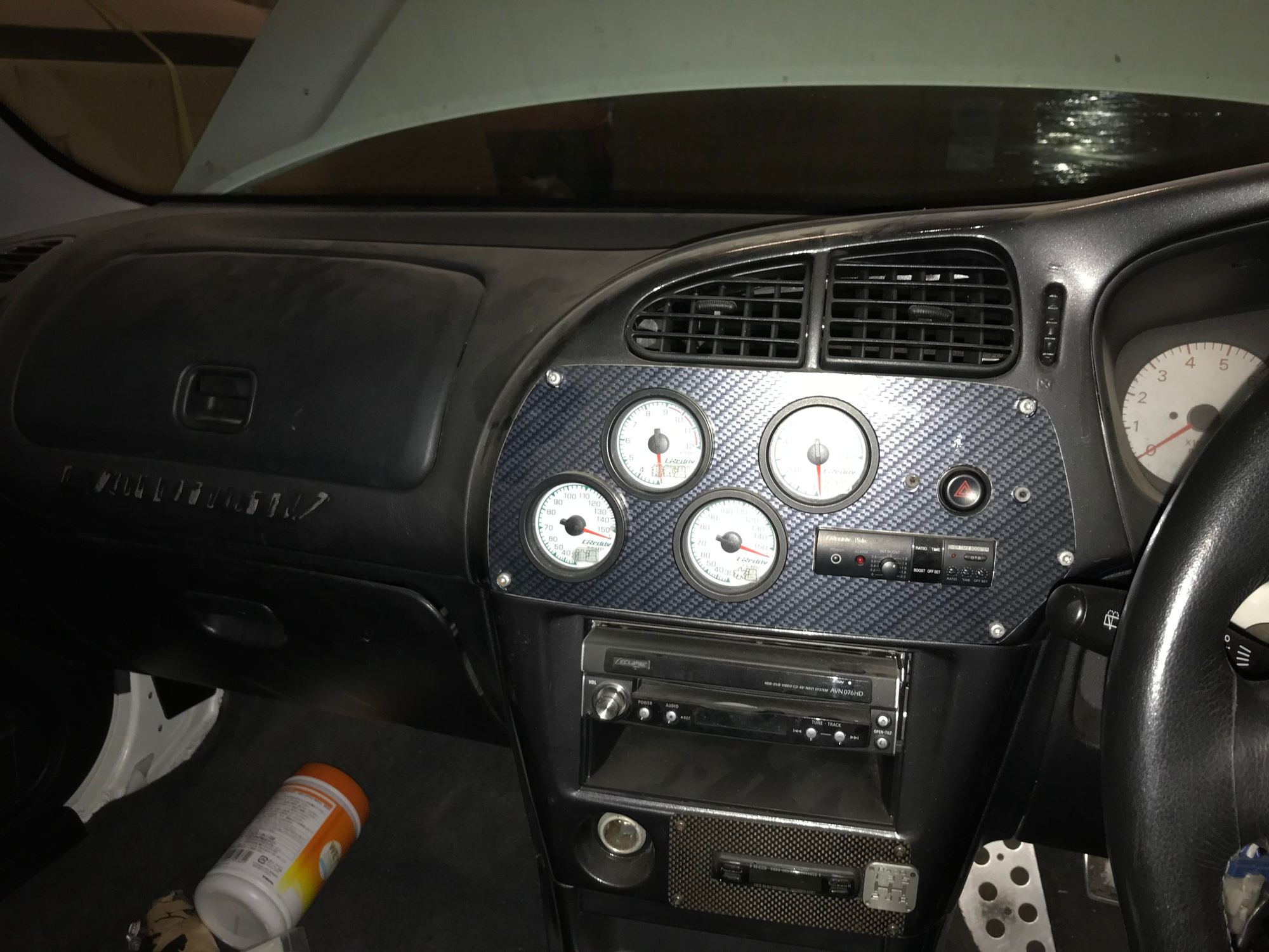 Thought I'd toss up a pic of the interior. The custom gages and carbon plate are growing on me.