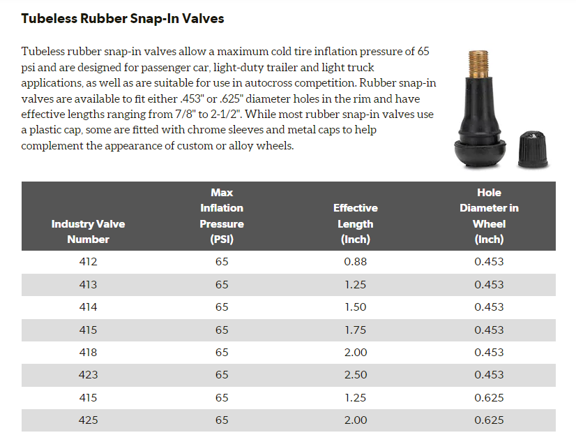 ^Tire Rack valve stem size chart. Source: What Are The Tire Valve Stem Types, Components, & Uses?