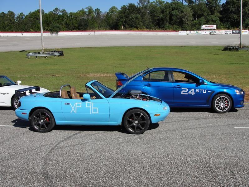 Parked in the "paddock" at a GCR event. Car in the foreground is a Miata with a Ford 302 V8.