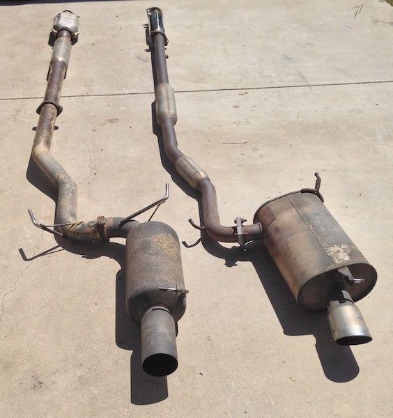 Stock exhaust resonated test pipe vs. Vishnu Signature Series with high flow cat (Carsound 52169).