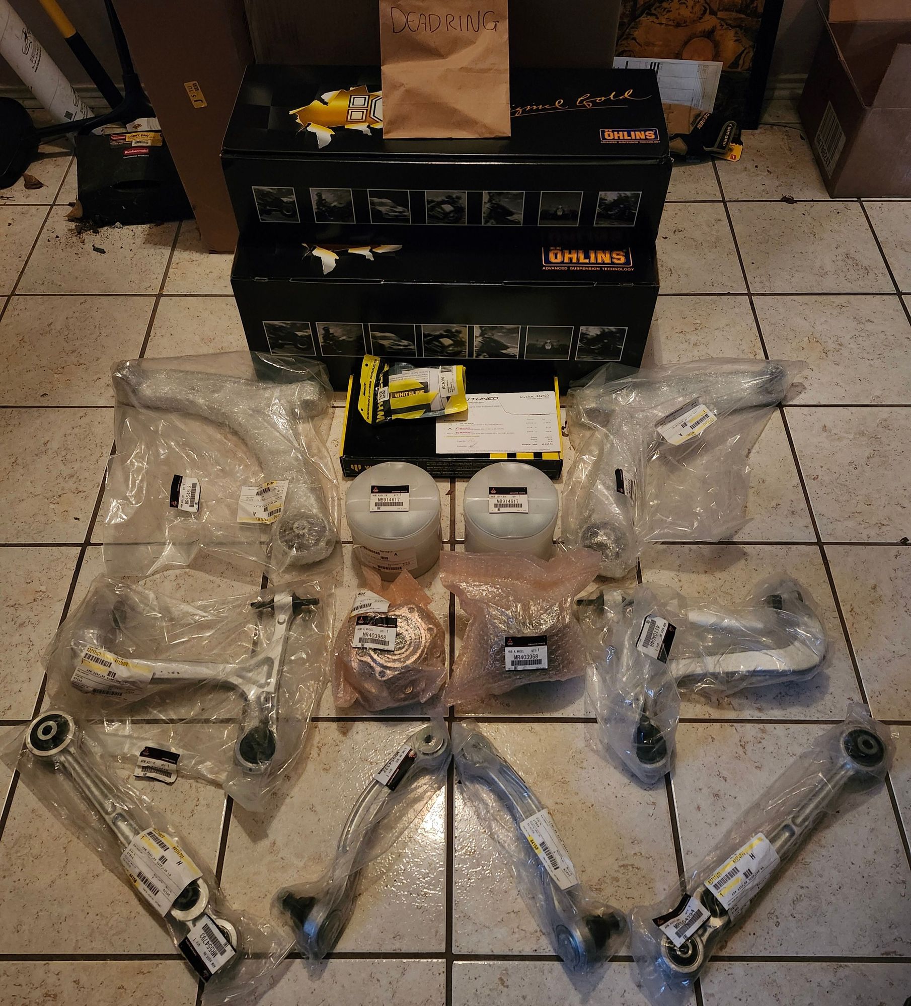 Feb 2026 Replacement control arms, hub bearings, and Ohlins Coilovers. And some Whiteline bump-steer & steering correction kit.