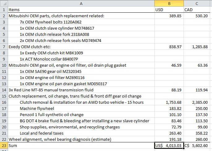 ^ 5MT Evo X clutch replacement cost breakdown