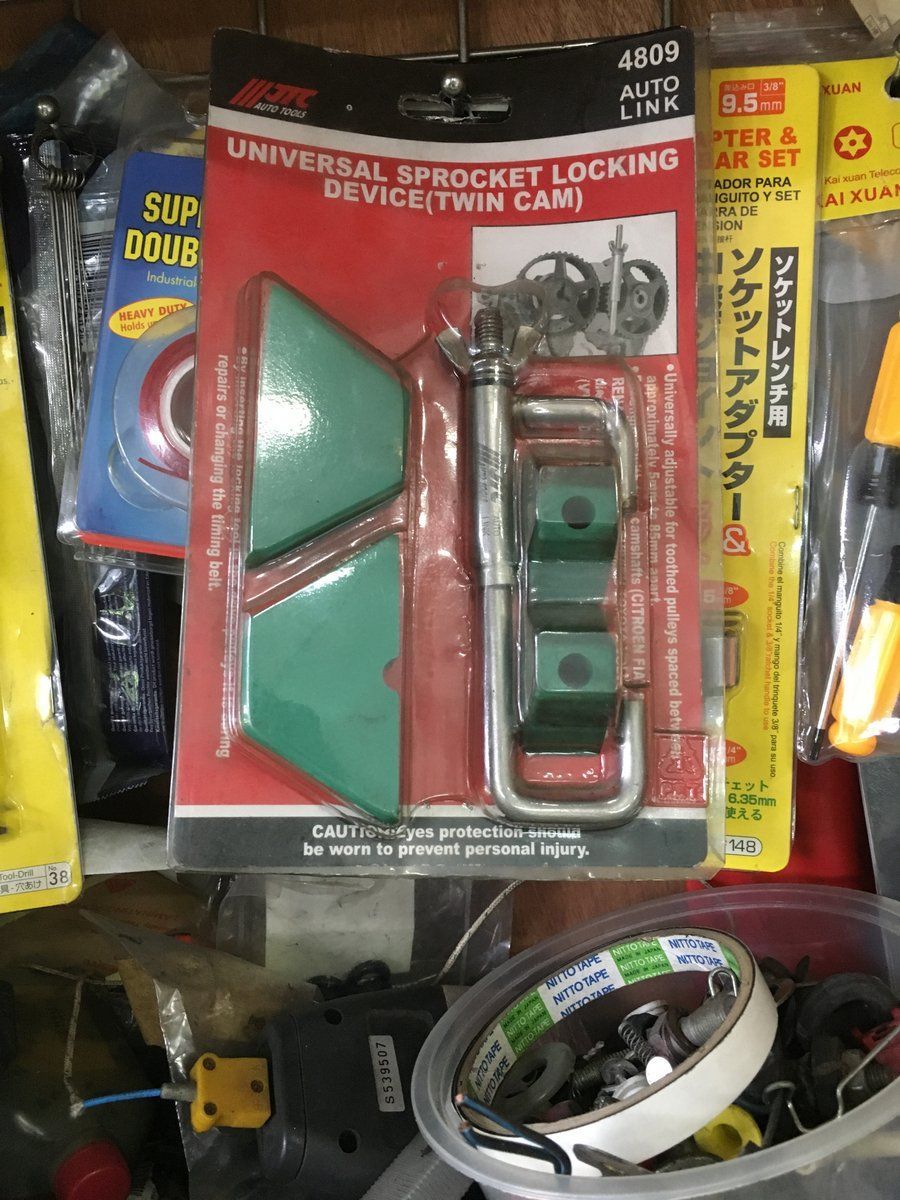 The mechanics used this gadget to lock the positions of the cam gears against each other