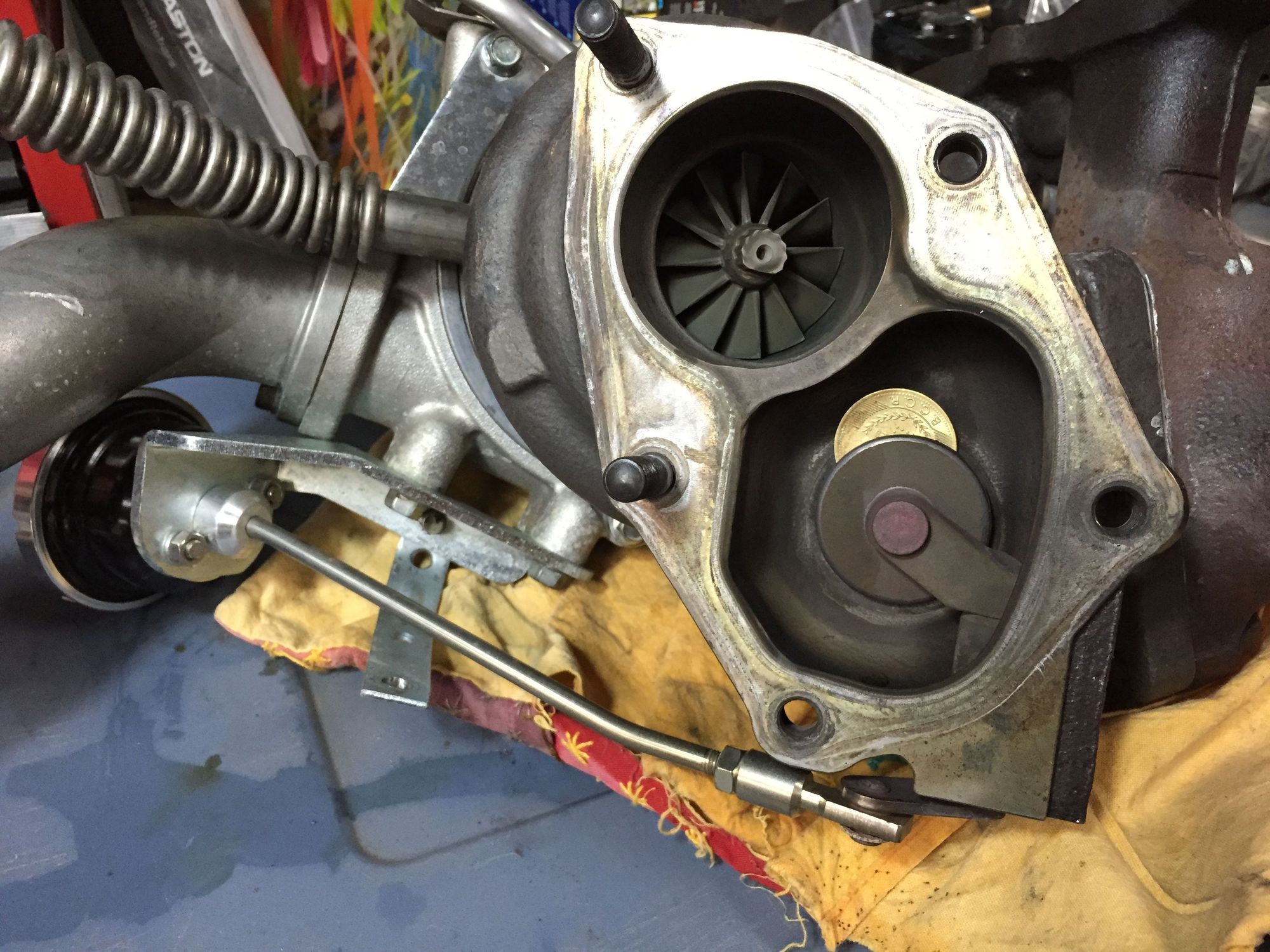 ...and this validates the flapper is getting all twisted. Likely caused by some material spec issues at HK$. Having spoken to some folks who work at Garrett, they suggested these are MHI turbos sourced by HKS from Greddy (TRUST). Funny world.