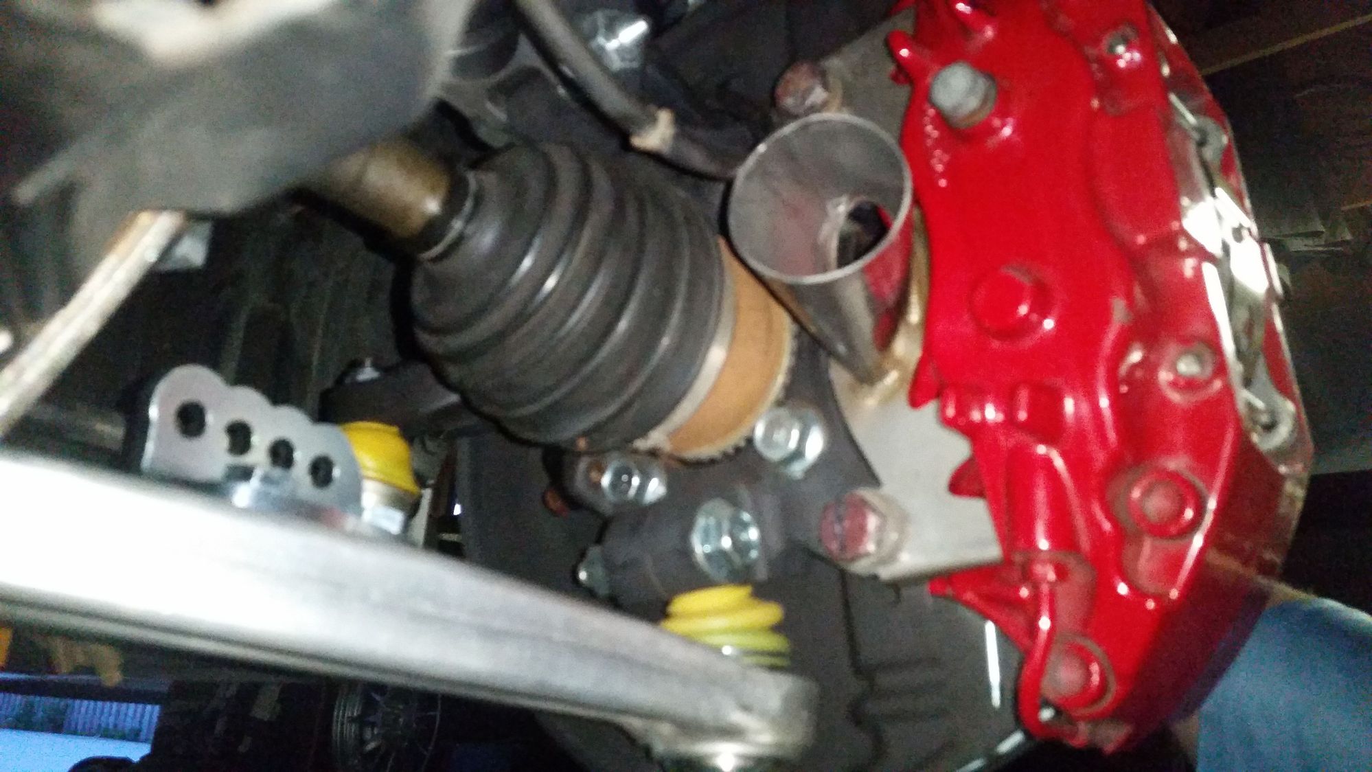 Took members advice. Installed Cusco brackets in reverse with shorter head bolt and no lock washer. Just thread locker.