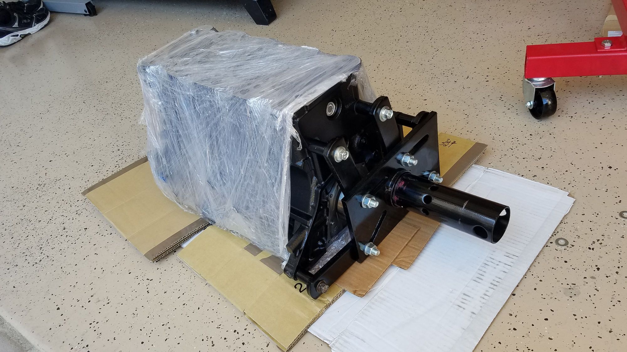 Getting ready to place it on the engine stand. I kept it covered in plastic until it was off the floor.