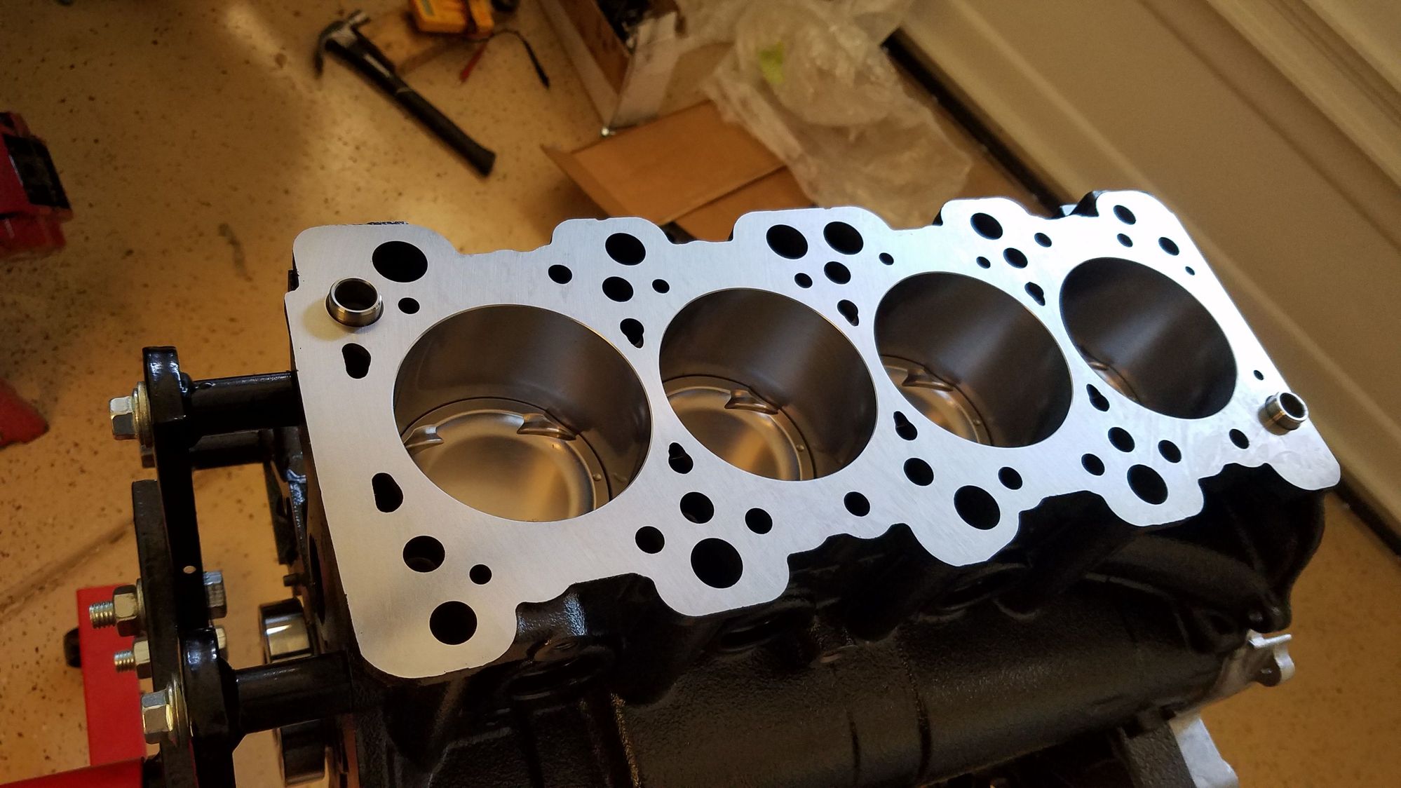Money Shot. The block surface and all bores have a mirror like finish. A thin layer of oil keeps everything safe from corrosion. Bare blocks like this should always be covered when not working on them.